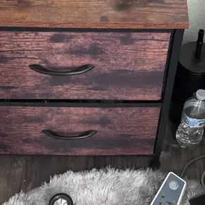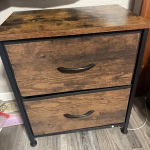 It was a good price so that’s the only reason why I give it some stars but the images make it seem like it’s a normal nightstand just maybe small and minimal but now that it’s arrived that I’m building it turns out that the drawers are like made out of some weird/different material as the top desk I thought it was gonna be all made out of wood. They’re made out of like cotton or something which I’m not a fan of it all because I hate materials that trap in dust. I don’t know what material is exactly but the drawers is one of those things where you can fold it and unfold it, picture below