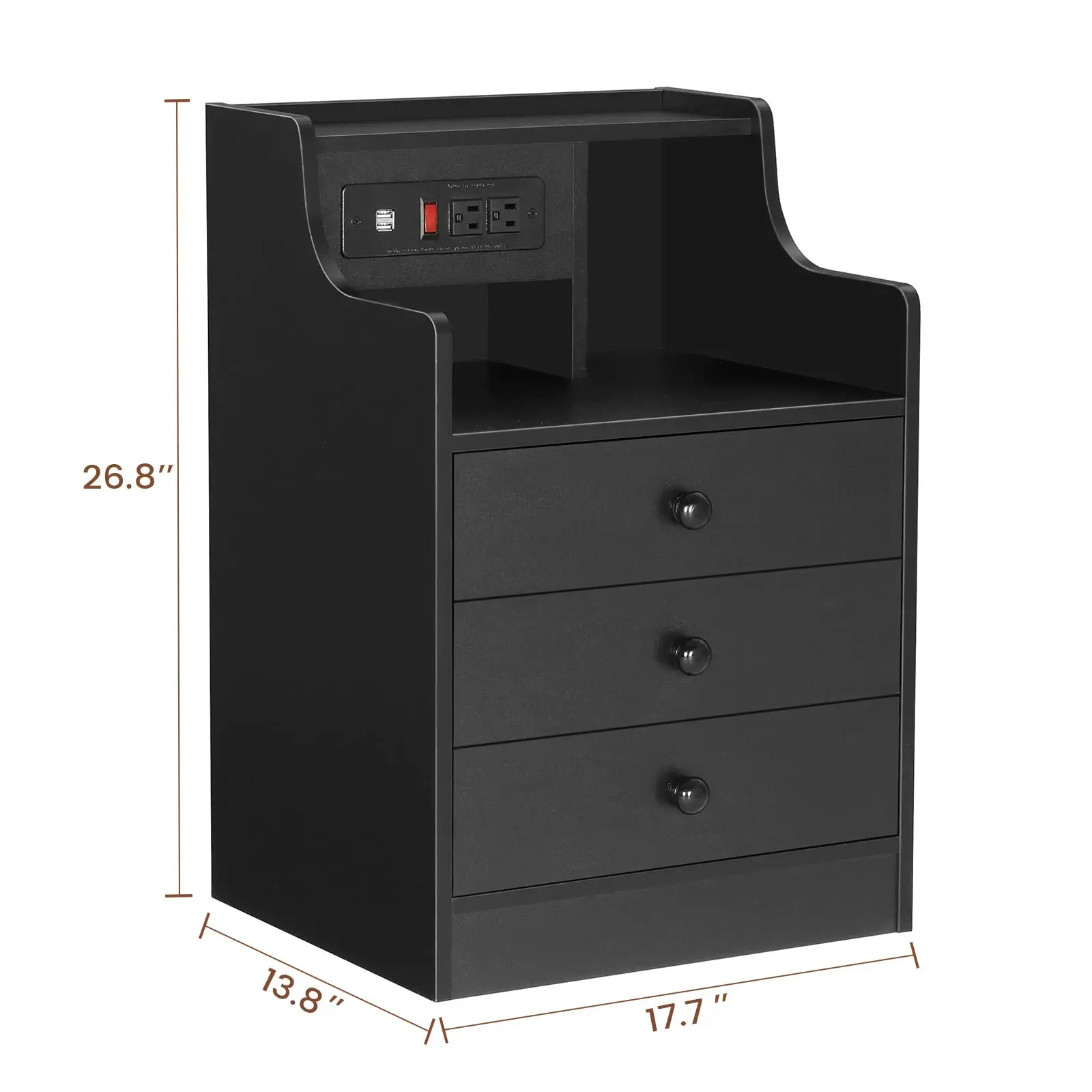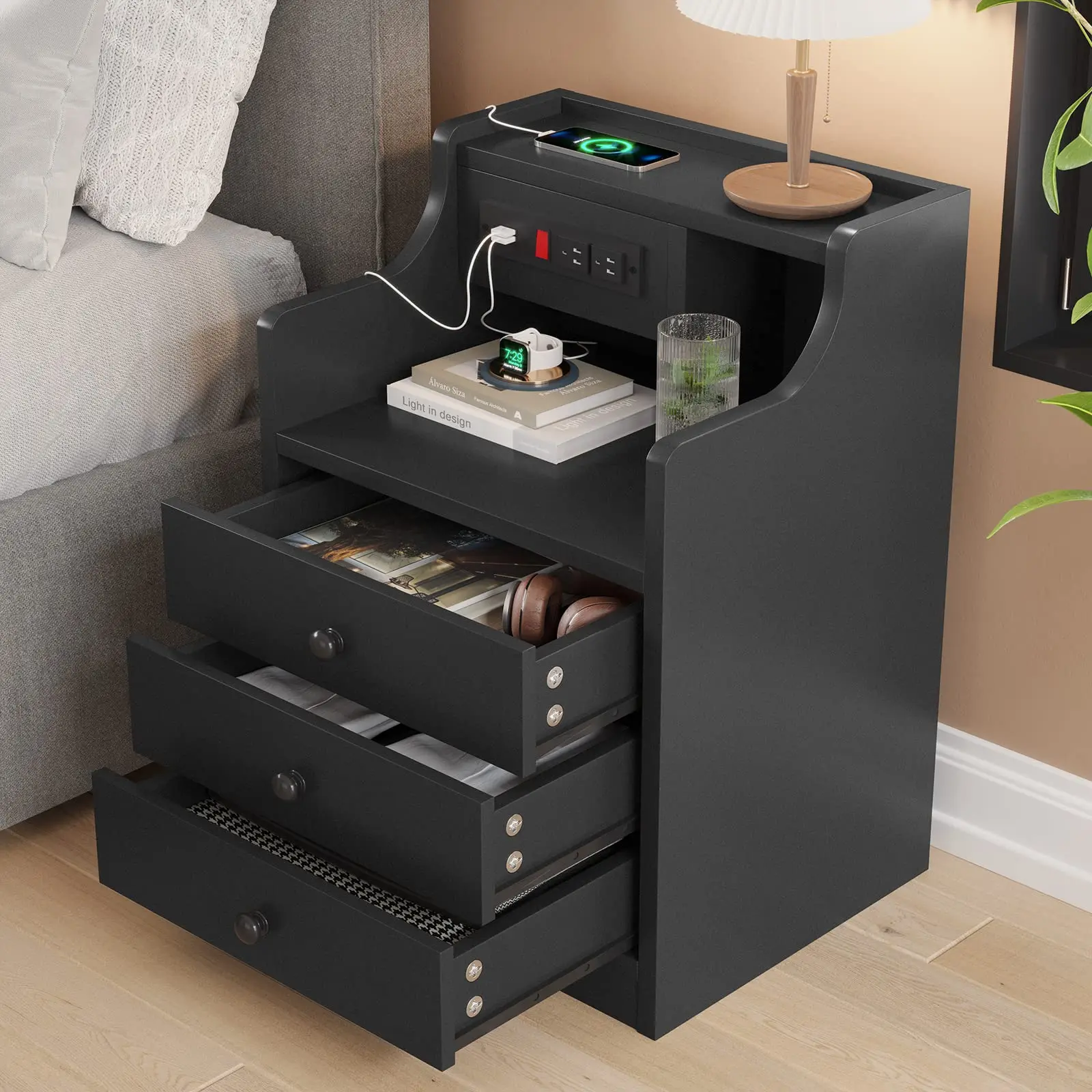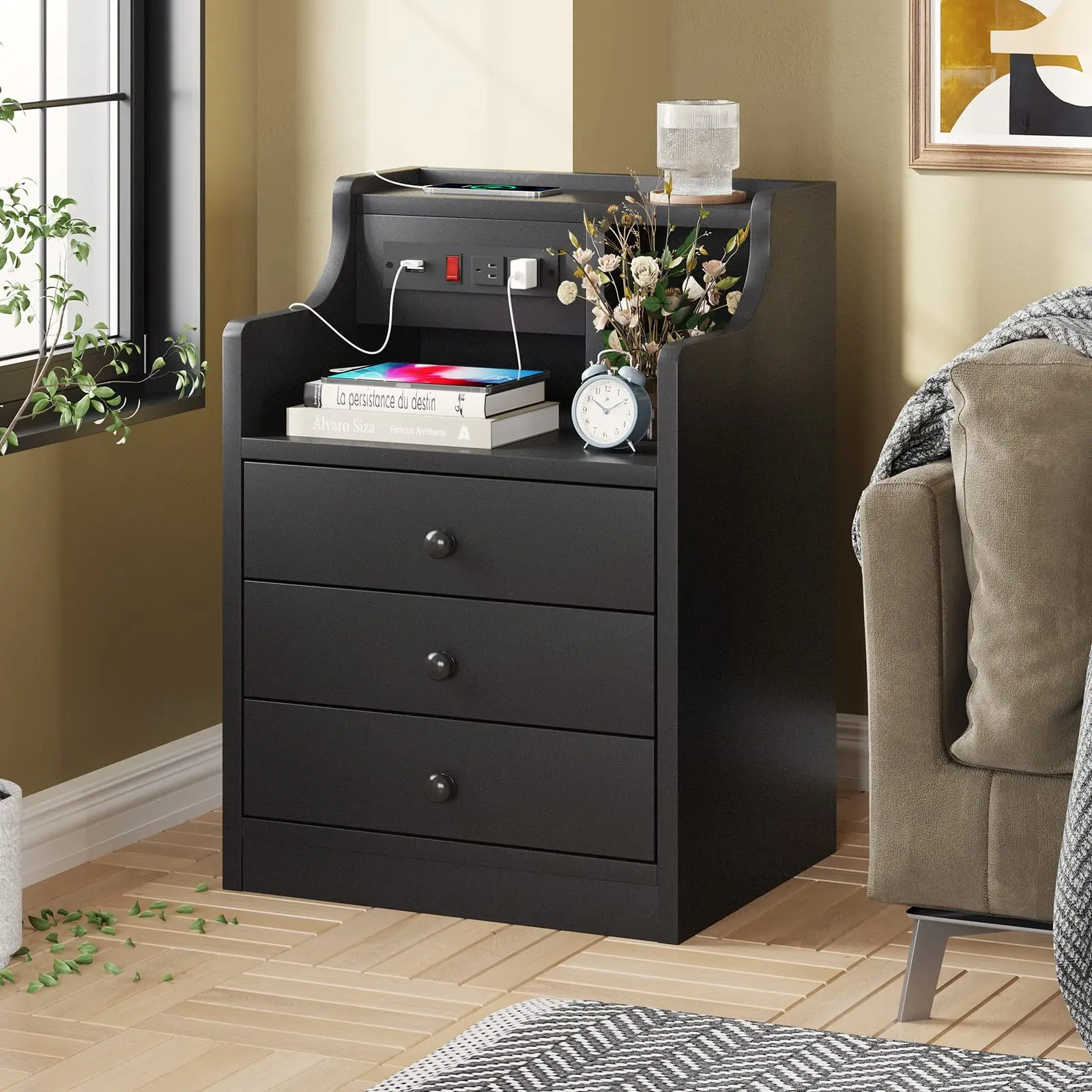 Sikaic Nightstand with Charging Station