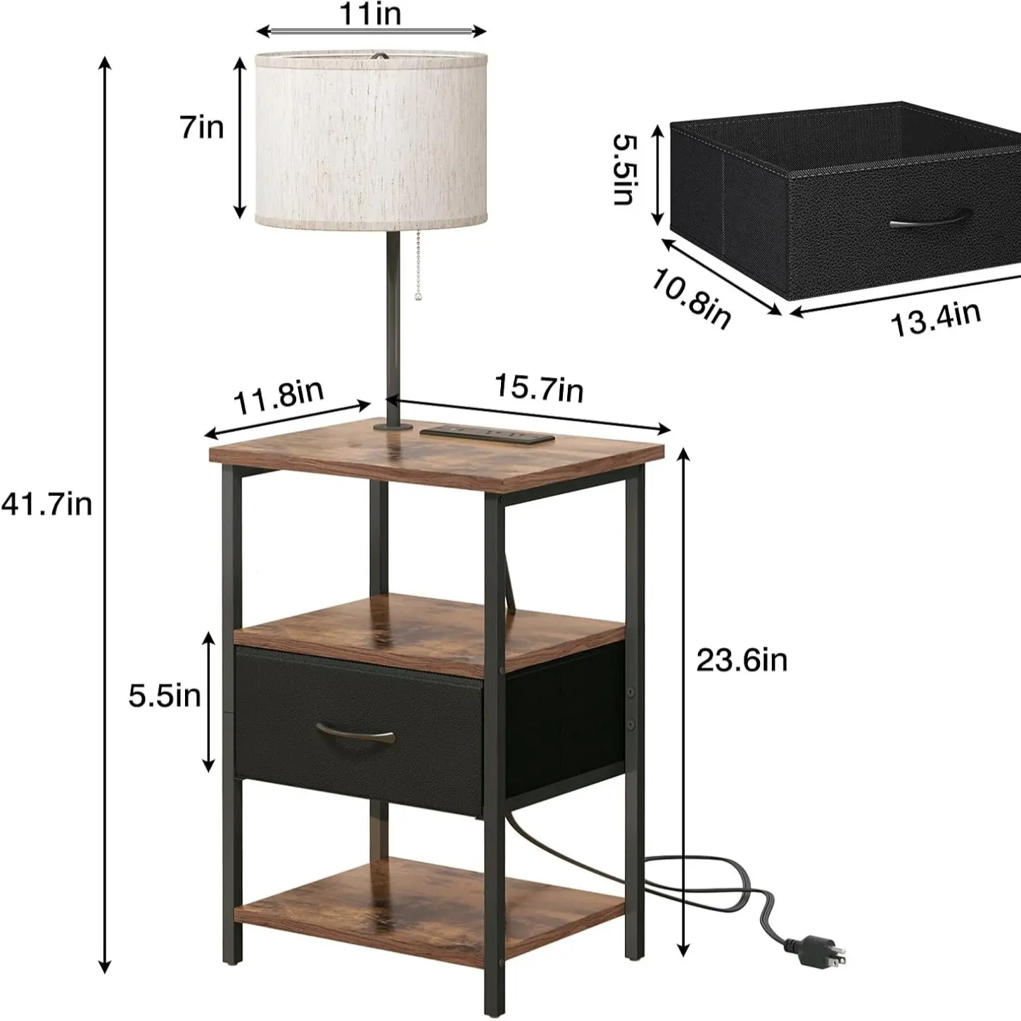 ·Adjustable Fabric Drawer: The fabric drawer offers two installation positions, allowing you to customize storage height for items of different sizes. This bedside table provides ample space to organize everything from books and electronics to daily essentials.