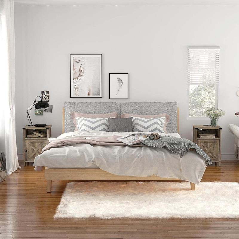 ·Farmhouse Design: The nightstands will have a rustic aesthetic that fits well with farmhouse decor. This could include elements like distressed wood finishes, metal hardware, and possibly even a barn door mechanism on the front