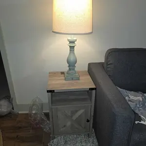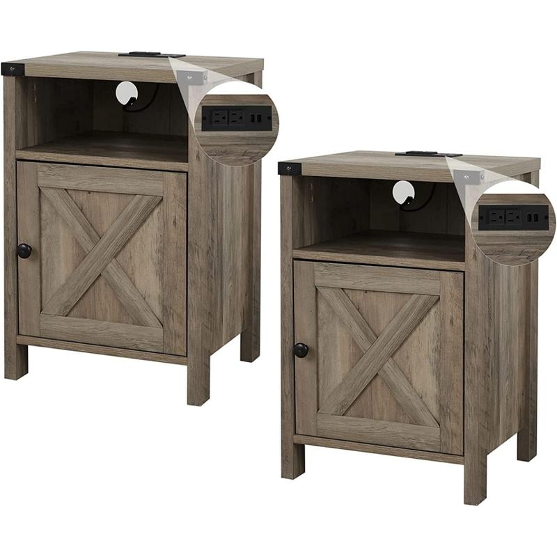 ·Barn Door and Shelf: A barn door adds to the charm of these end tables. Behind the door, there might be a compartment for storage, while an open shelf below provides additional space for books, magazines, or decorative items