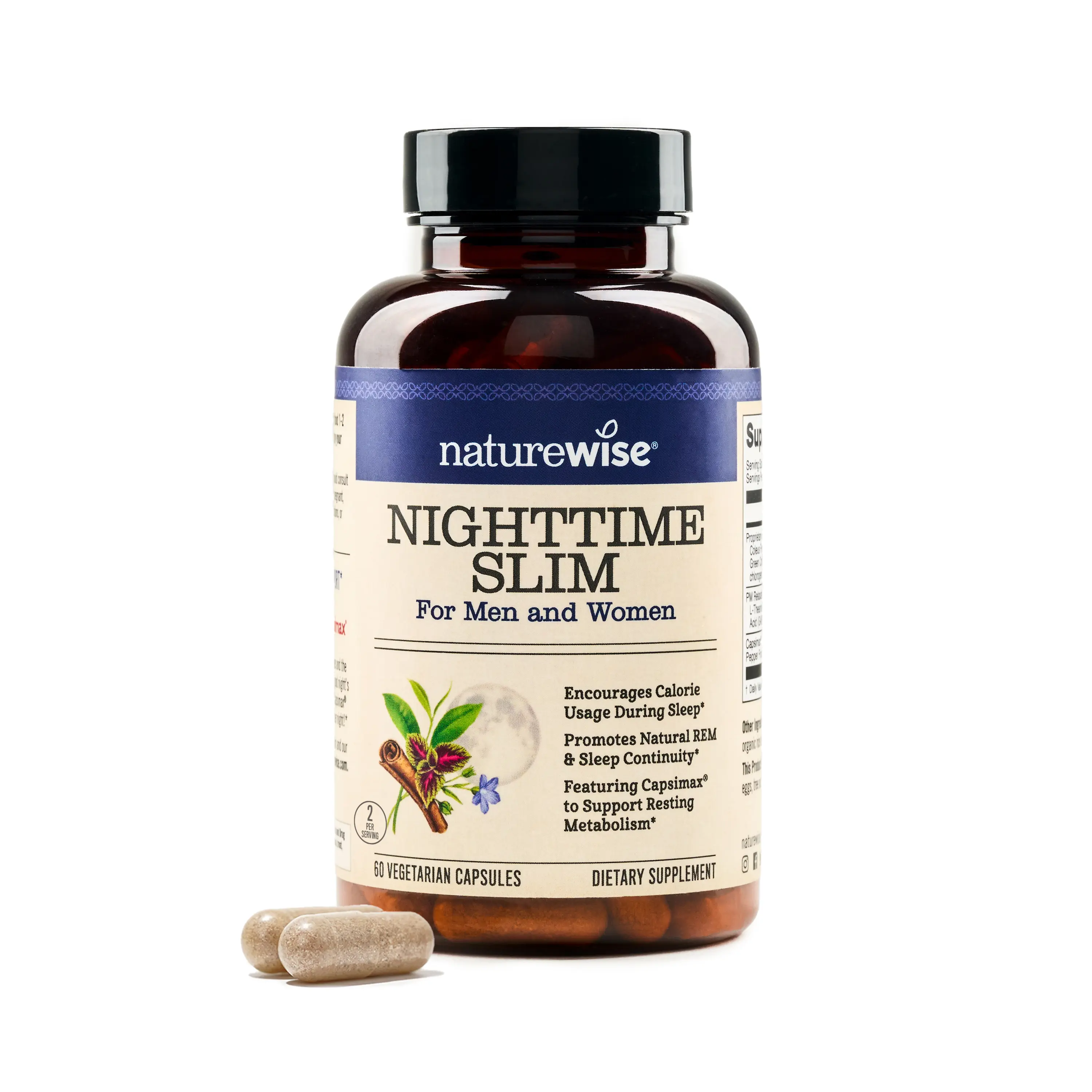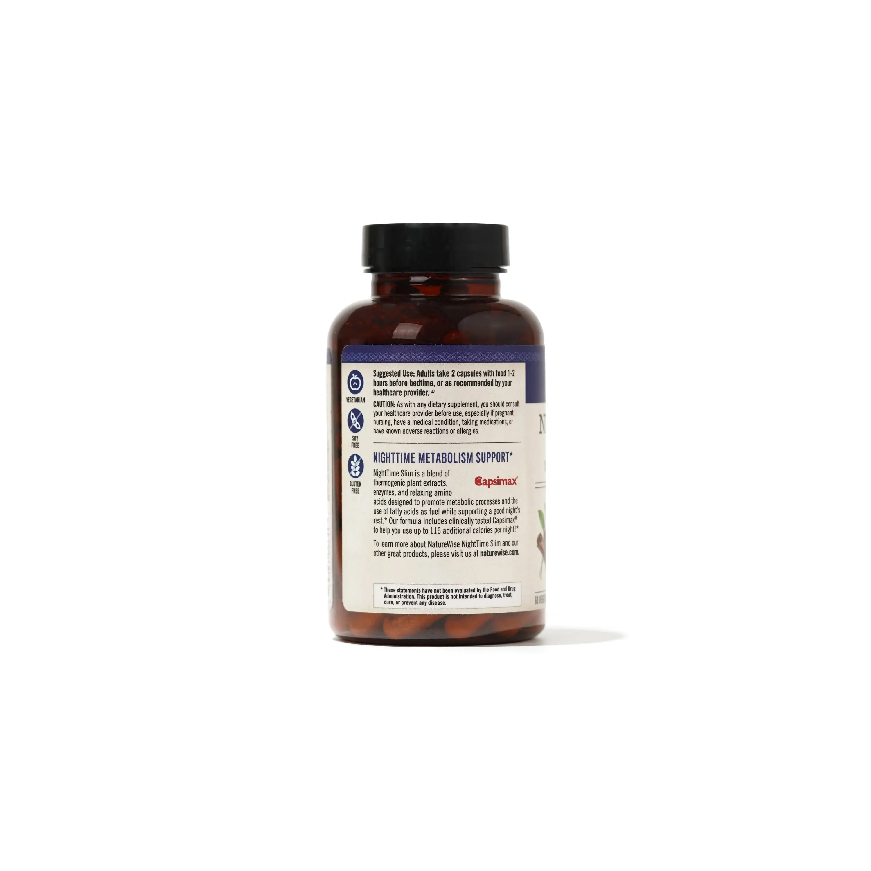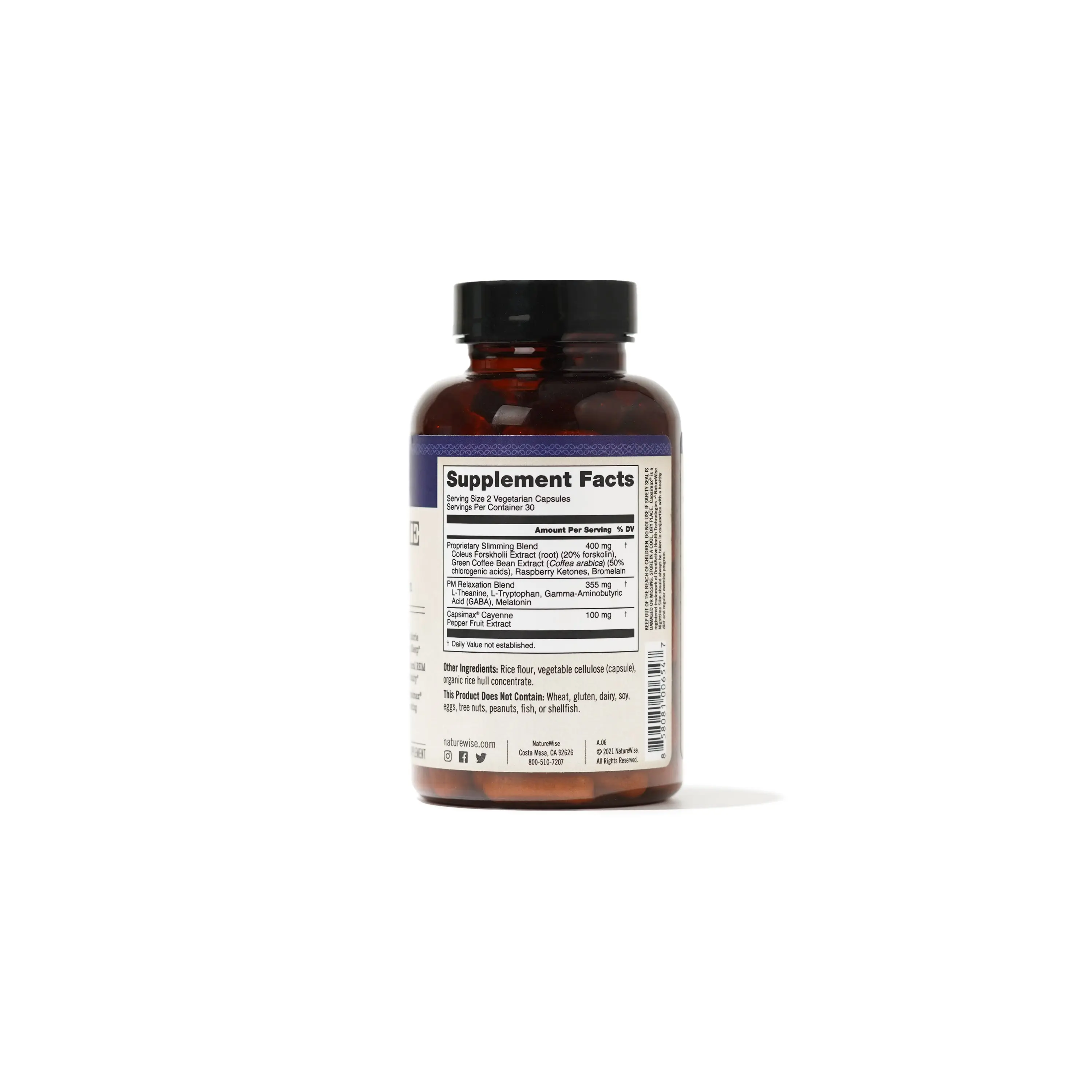 Unlike some weight management supplements or sleeping aids that may have unhealthy ingredients or unwanted side effects, NatureWise NightTime Slim capsules are made with clean, non-GMO ingredients. NightTime Slim is vegetarian, dairy free, gluten-free, and does not contain wheat, eggs, soy, dairy, tree nuts, peanuts, fish, shellfish, or sesame.