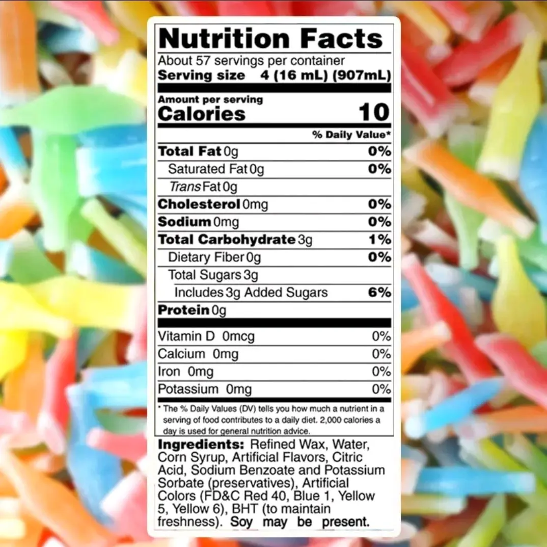 Unfortunately, this product was a very bad experience. Most of the wax bottles leaked inside the bag, making everything extremely sticky and messy. When squeezing one bottle, the liquid shoots out from the other end and splashes everywhere. The flavor is very weak. Poor quality and packaging. not