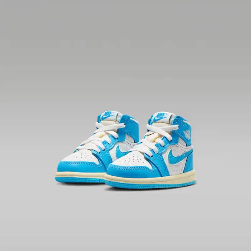 The Jordan 1 Retro High OG UNC Reimagined (TD) brings iconic heritage to tiny feet. Featuring classic UNC blue and white leather in a toddler-friendly design, this high-top delivers timeless Jordan style, soft cushioning, and all-day comfort for little ones.