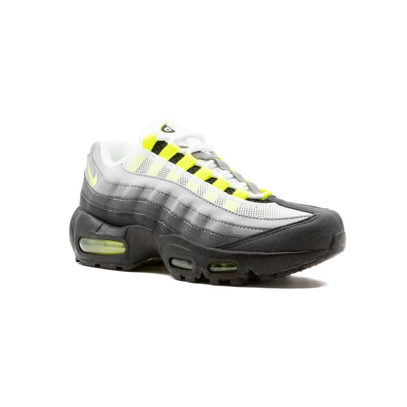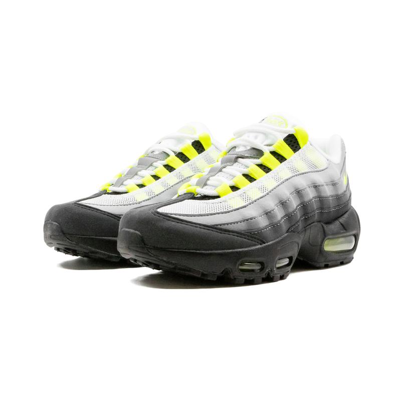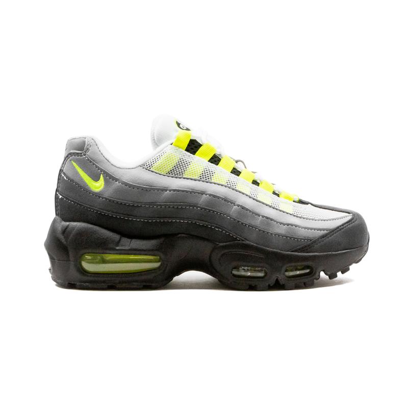 The Nike Air Max 95 GS “Neon” is the youth sizing of the iconic original colorway of the retro runner by Nike. The legendary Air Max 95 “Neon” returned in December 2020 as part of Nike’s dedication to bringing back some of its greatest Air Max models in original looks. The 2020 version of the shoe features many of the same “OG” design details as the pair from the ‘90s. White mesh can be found around the eyelets and a gradient light-to-dark grey suede design appears on either side. Neon accenting appears on the Swoosh embroidery on the heel, on the split “Air Max” logo on the tongue, and inside of the visible Air unit in the heel of the black rubber midsole. Reflective material is located on the tongue. Release date: December 17, 2020.