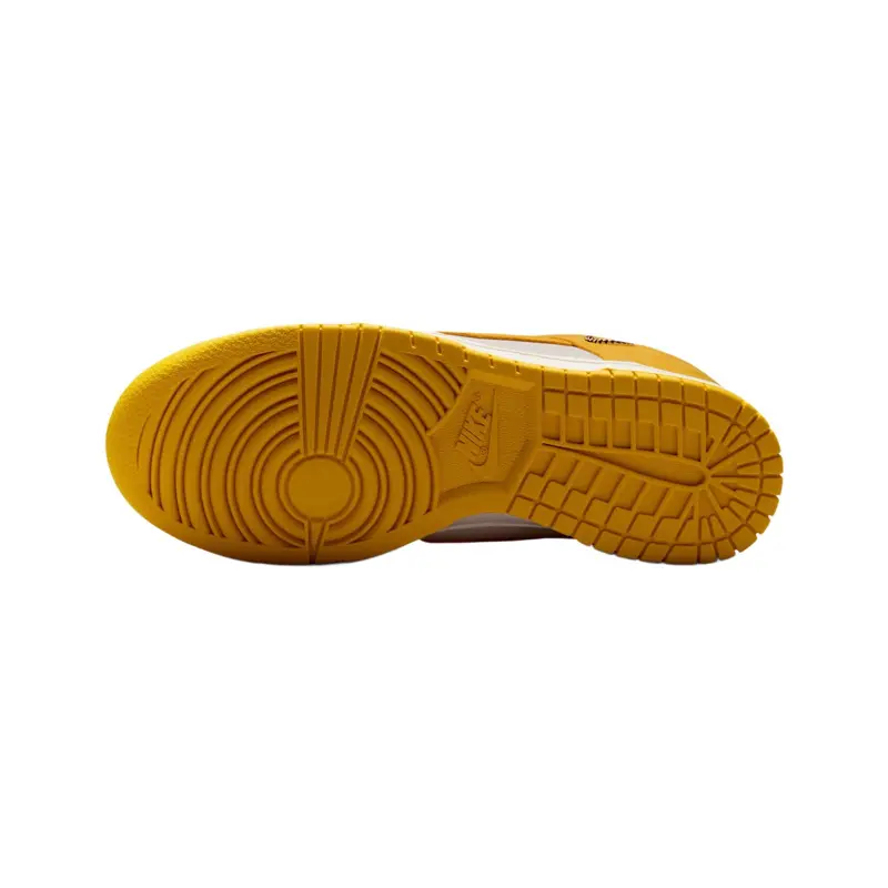 The Nike Dunk Low “Dark Sulfur Gold Mini Swoosh” (Women’s) brings a fresh twist to the classic silhouette with a white leather base and rich yellow overlays. Finished with a metallic gold mini Swoosh for a premium touch, this pair blends retro court style with modern flair for everyday wear.