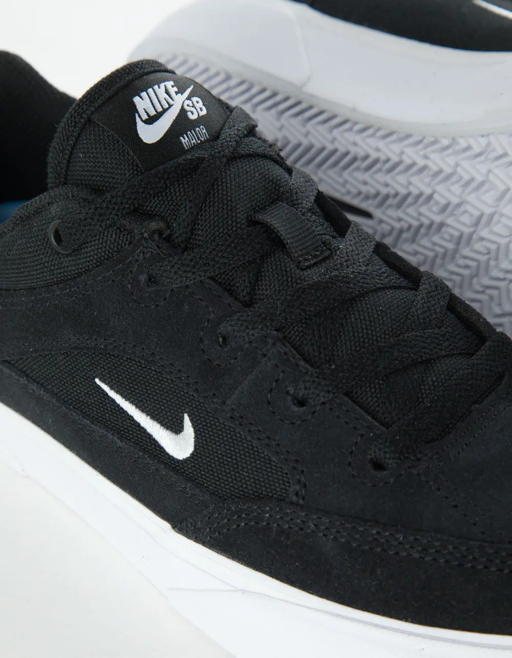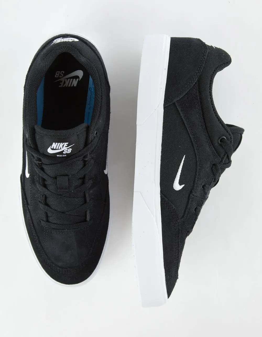 Nike SB Malor Shoes. Destroy this shoe! The SB Malor was designed for entry-level skaters who need a shoe that can handle long hours of practice honing their skills. Layers of suede and canvas keep it durable, while the outsole combines a herringbone pattern with the Air Force 1 circular pattern to help accentuate both grip and movement. Step in, the Malor is ready to get shredded. Suede and canvas upper creates a classic look that’s built to last. Vulcanized construction fuses the sole to the upper for a flexible, broken-in feel. Extended toe bumper adds extra durability. Cushioned tongue and collar for added padding. Rubber midsole. Rubber outsole. Imported.