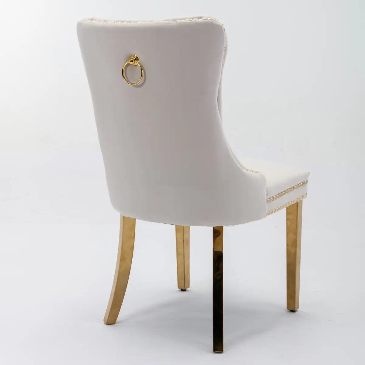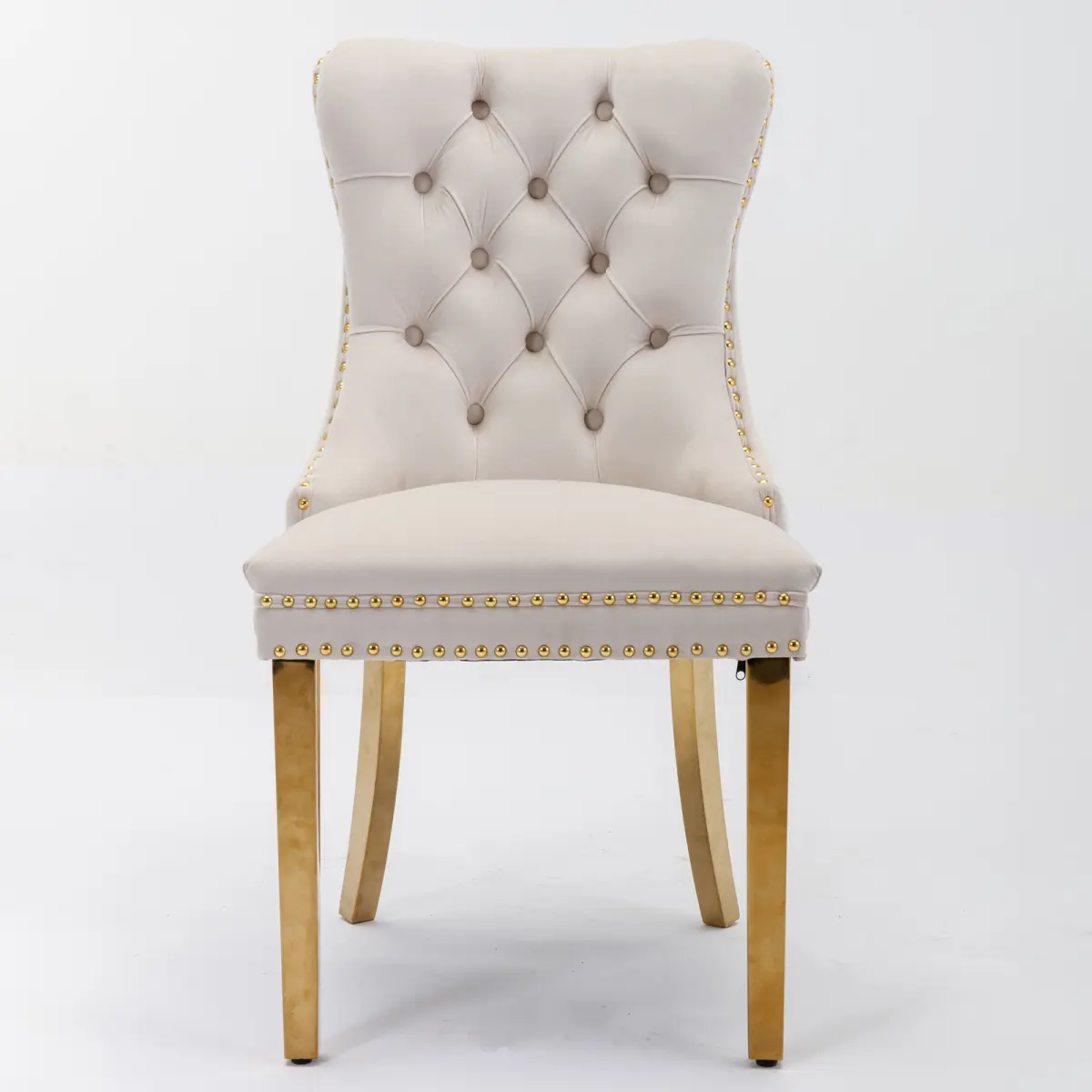 ItemCode:W114391507 product type:SingleBoxProduct name:A&AFurniture,NikkiCollectionModern,High-endTuftedSolidWoodContemporaryVelvetUpholsteredDiningChairwithGoldenStainlessSteelPlatingLegs, NailheadTrim,Setof2,BeigeandGold,SW1601BGOrigin:China color:Beige material:Velvet filling:Foam wood types:Does Rubberwood offer custom services?Yes