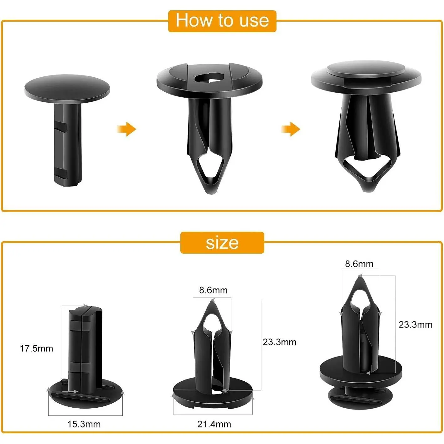 ·Great Material: These bumper clips are made of high-quality black nylon material, anti-wear, and anti-corrosion, which would not break or crack easily during use.