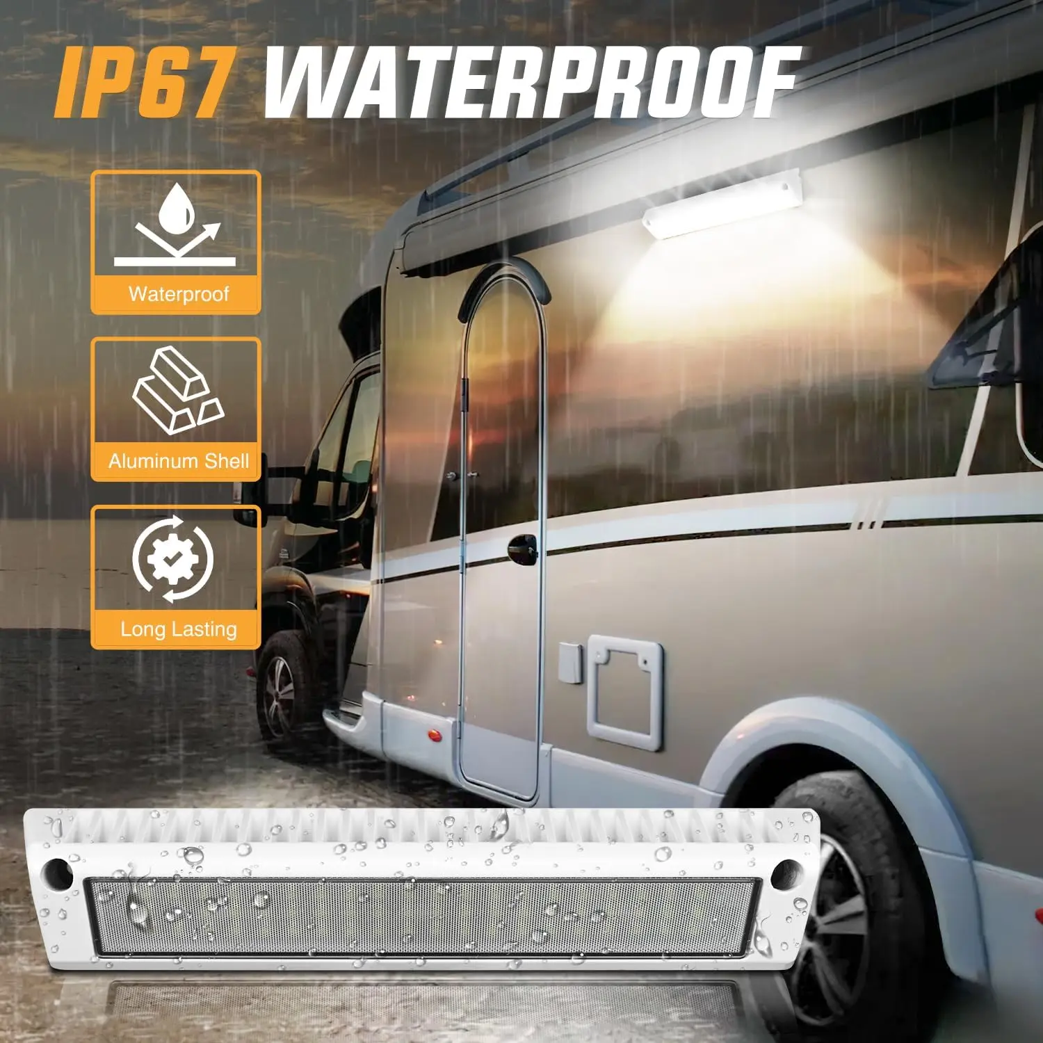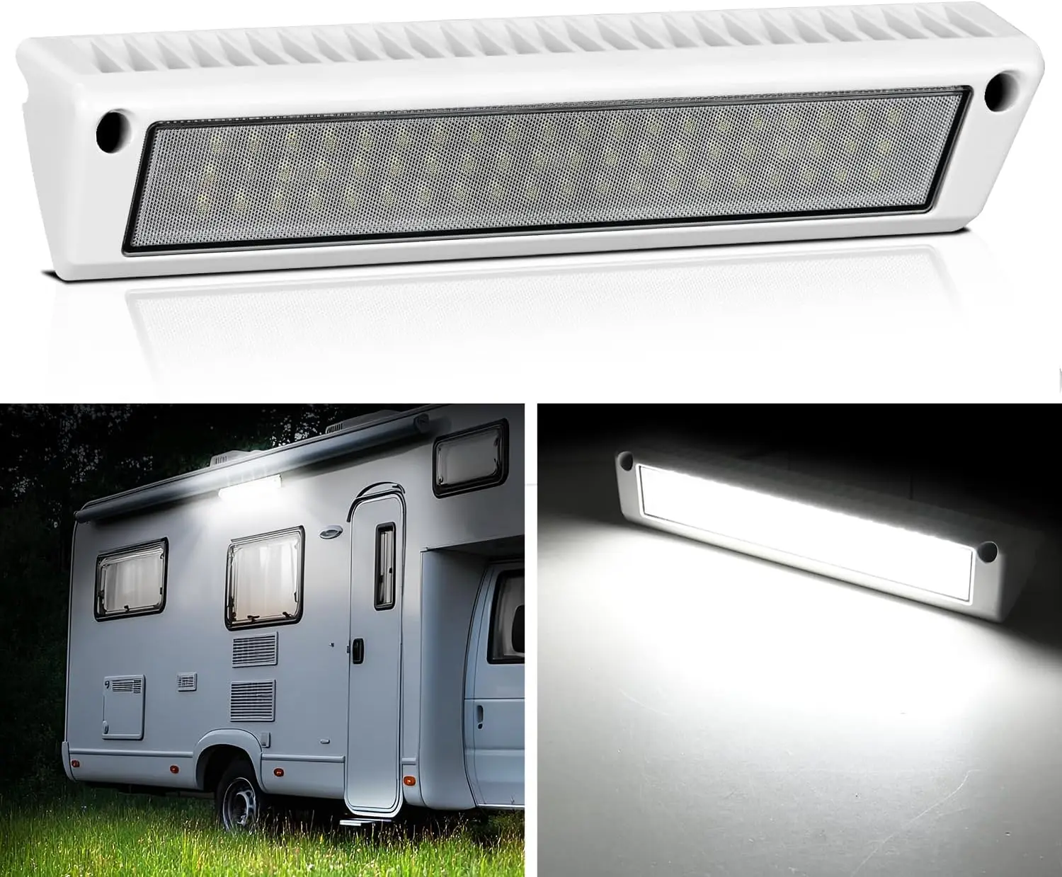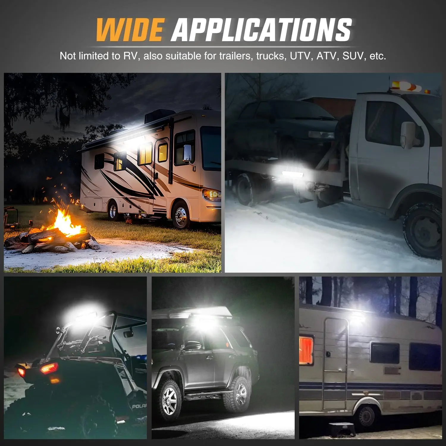 ·Wide Application: Fits all 12V, and 24V vehicles, especially RVs, campers, and travel trailers, also suitable for toy haulers, tractor-trailers, cabinets, campers, motorhomes, marine boats, SUV roof racks, fire truck, and can even be mounted to the undercarriage of your vehicle, RV outside lights, RV porch light, food truck lights, roof rack lights, led scene light and cargo trailer lights, etc