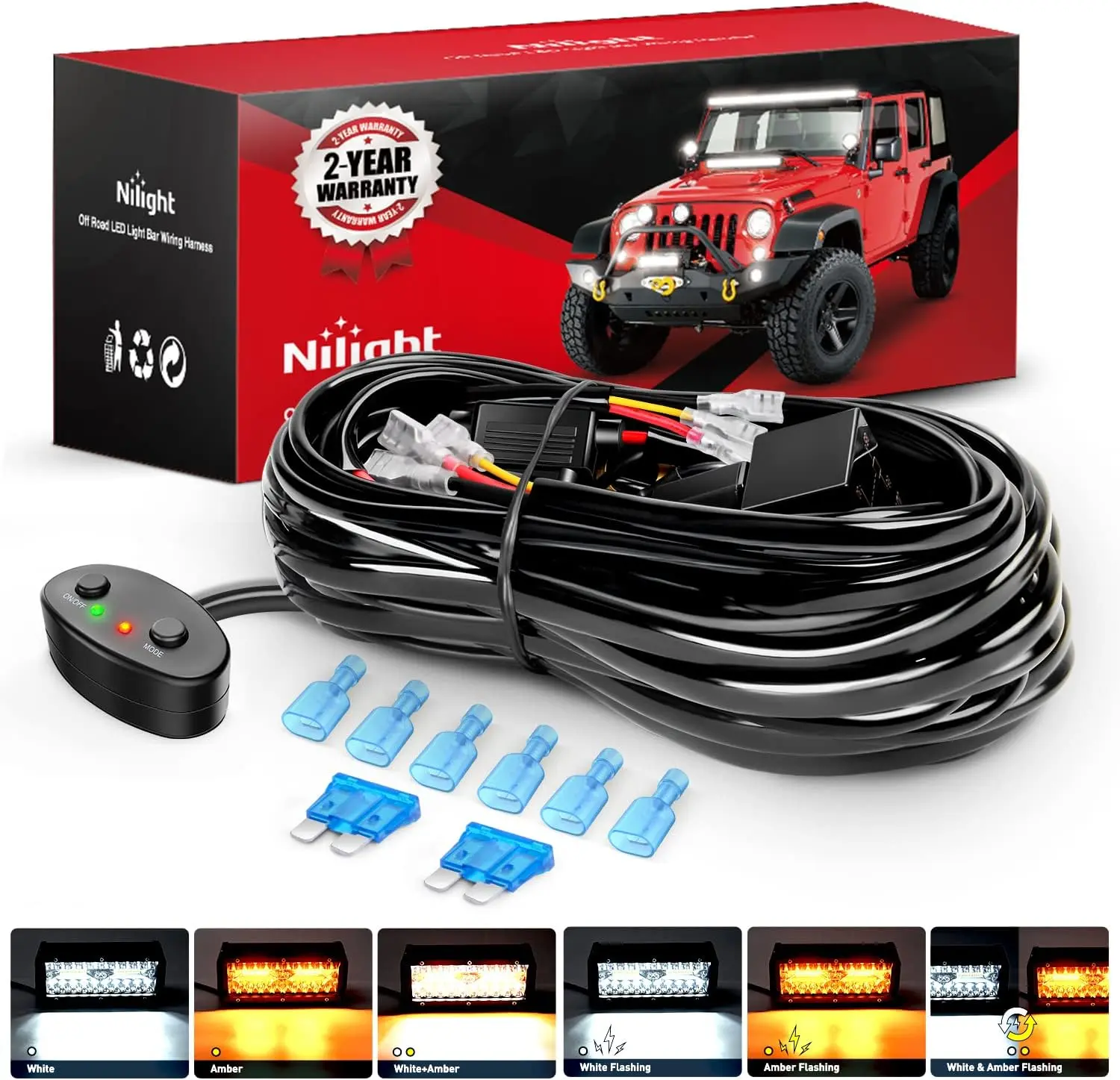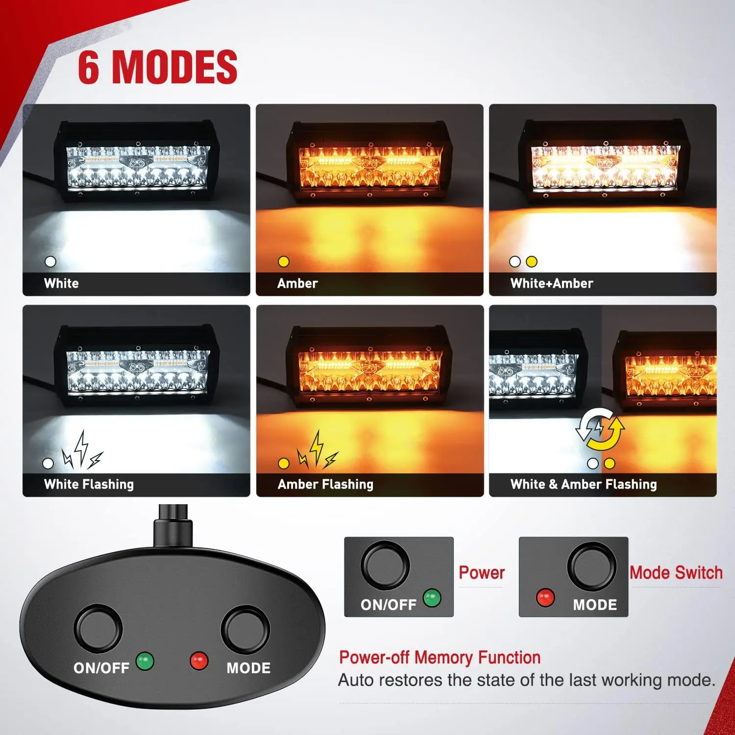 Customized Design for NILIGHT 6 Modes Amber White Light Bar Strobe