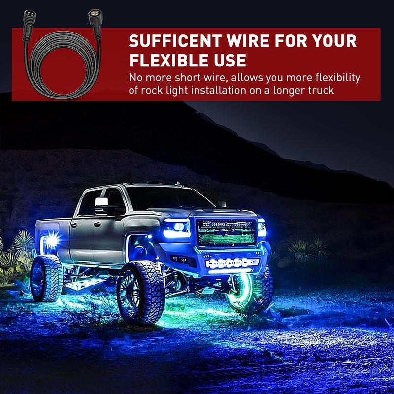 ·Function: Directly plug-n-play with the wire connector on controller box and wire connector on rock light, extending rock light wire length and getting your full flexibility for different rock lights mounting position, even on a longer truck. No more worries of insufficient wire length.