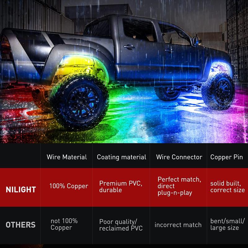 ·Fitment: Specifically fit for Nilight 4 and 8 pods RGB rock light kits, ASIN: B01MG5UXV4 and B08KF88G32.