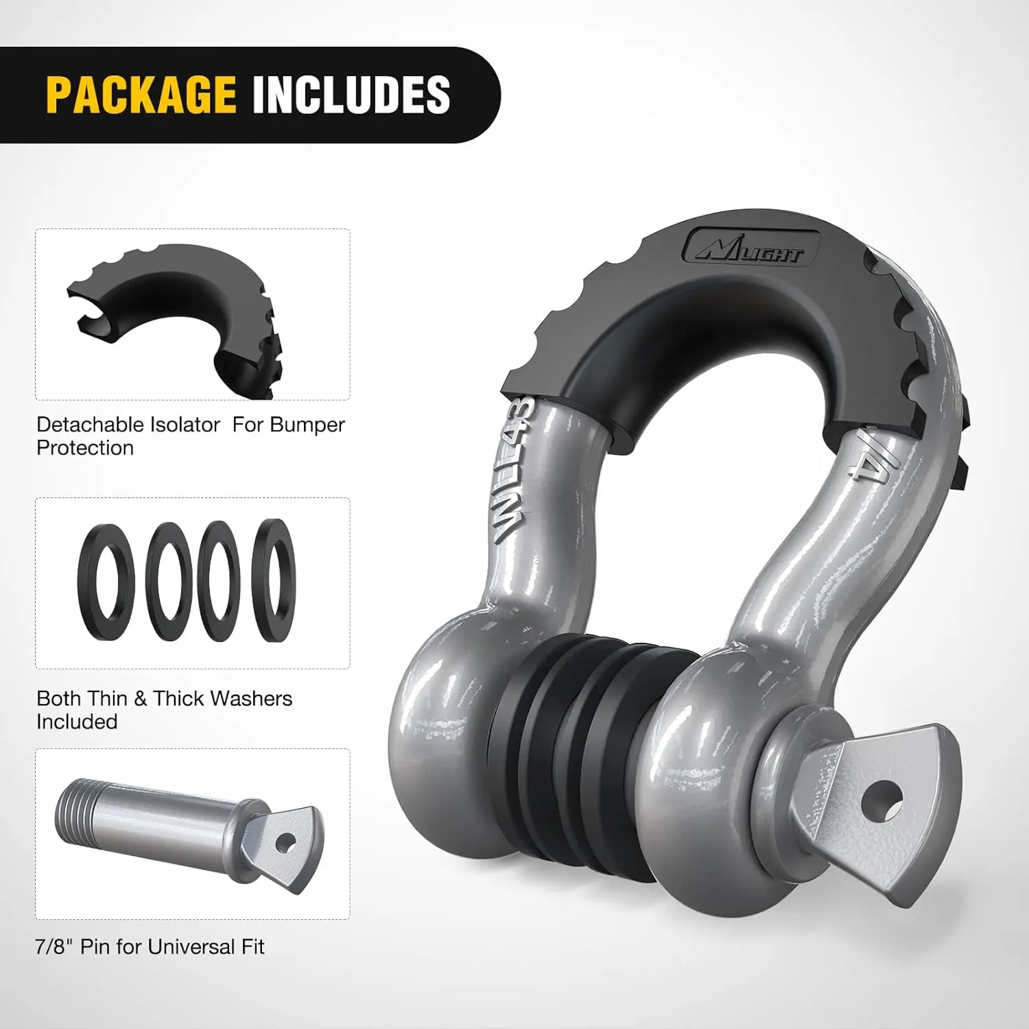 ·【Package Includes】- 1xDetachable Isolator 2x Thin Washers & 2xThink Washers and 1x7/8"Pin for Universal Fit