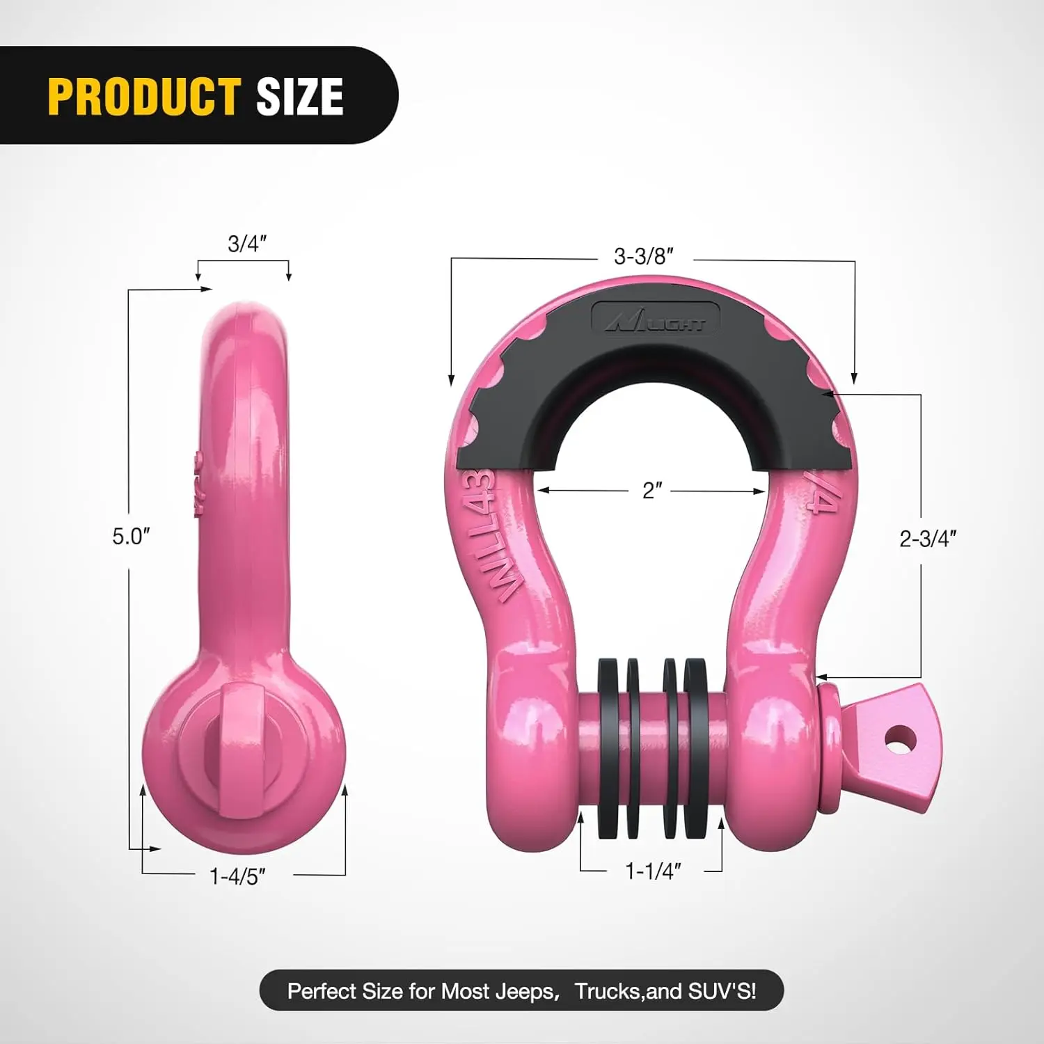 Universal Design and Great For Jeeps, ATV, UTV, Trucks, Trailers, and Sport-Utility Vehicles. With This Shackle, Easy To Install, Reliable To Use.