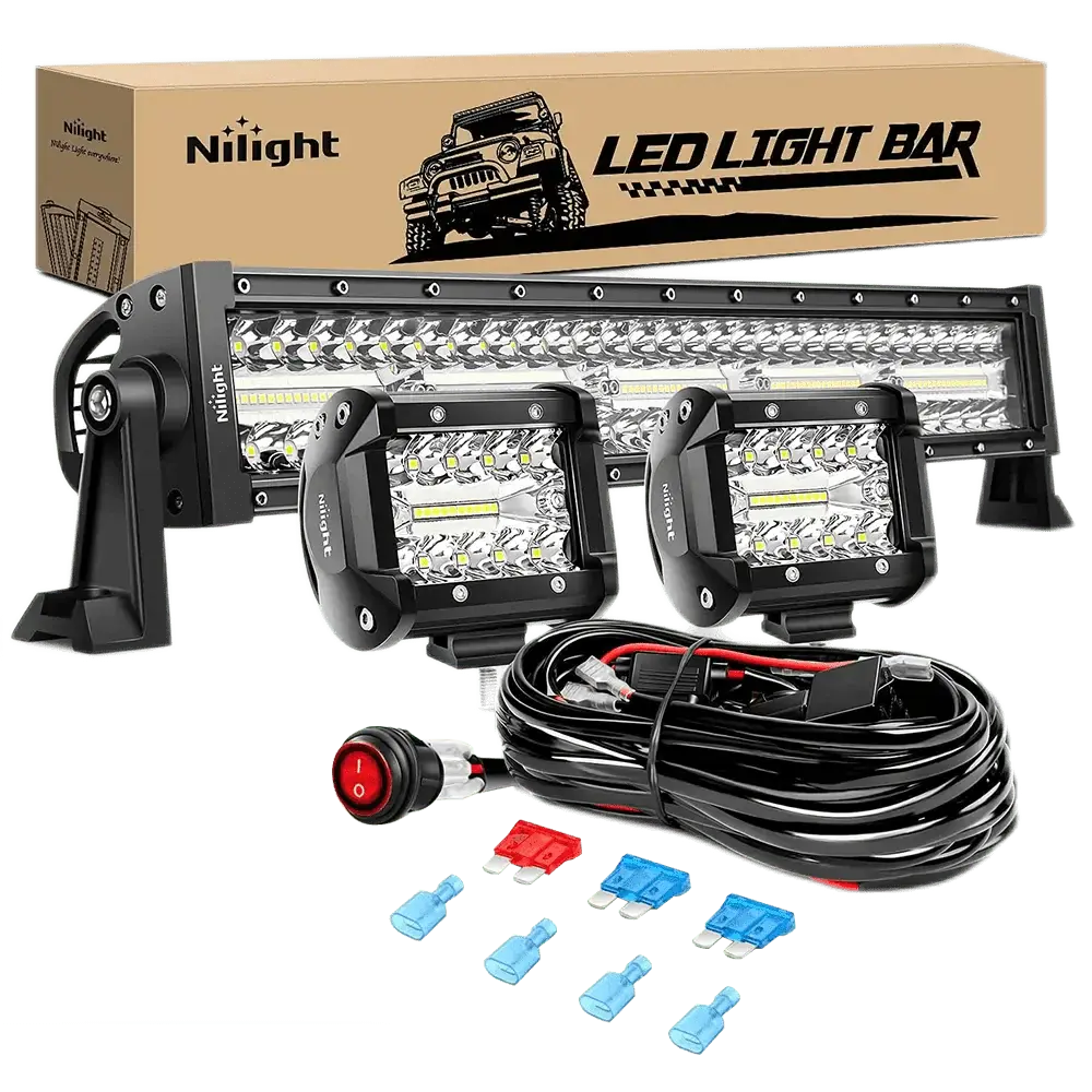 ·Package include: 1PC 22Inch LED light bar, 2PCS 4Inch cube LED pods, 1PC Off-road Wiring Harness - 4 Leads