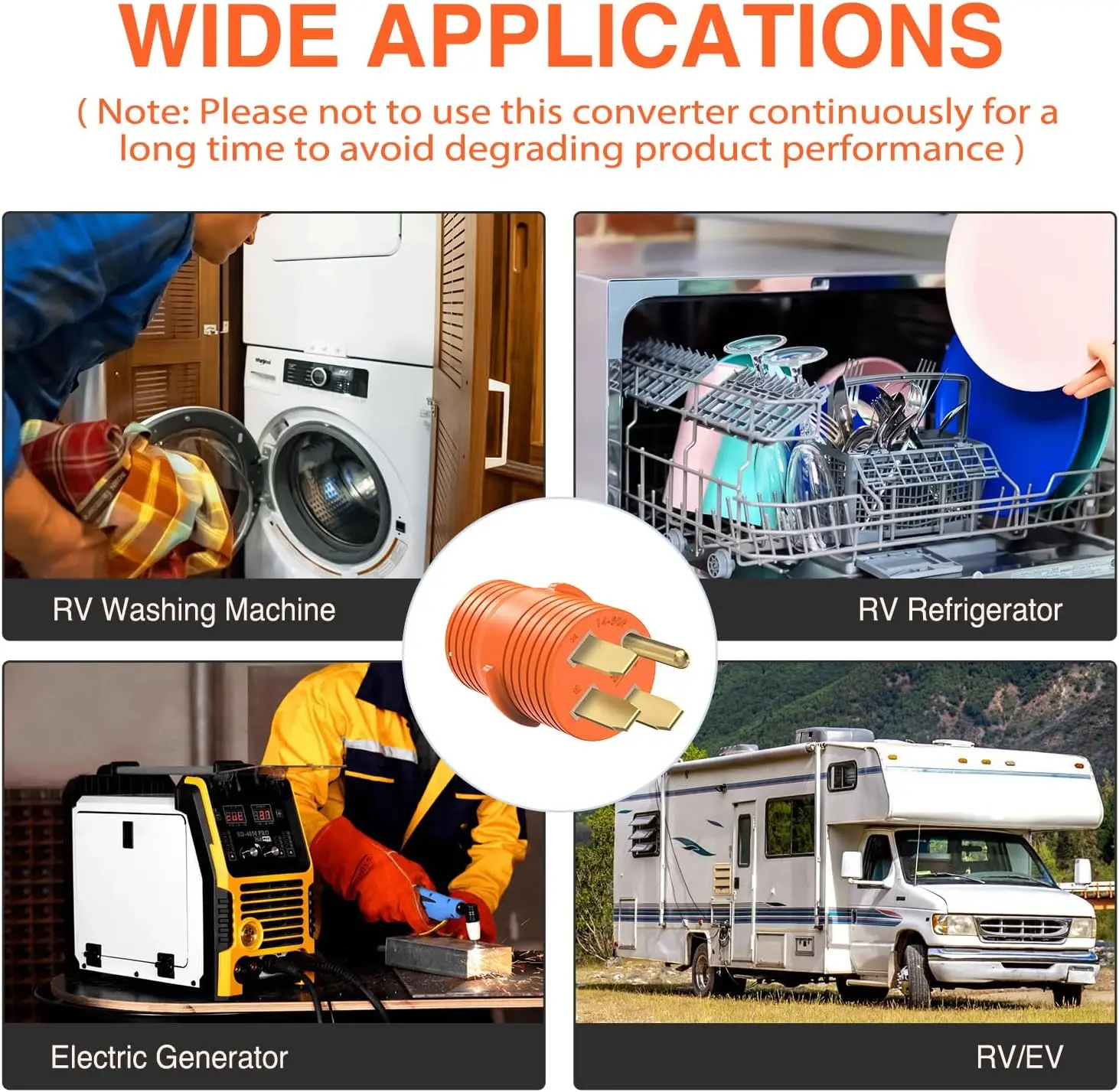 ·UL and ETL Certified: The extension cord is internationally UL and ETL certified, can be use in both the U.S. and Canada. Wires meet the safety and quality guaranteeing. Features NEMA TT-30P & NEMA TT-30R connections and is rated for 125 volts/3750 watts.