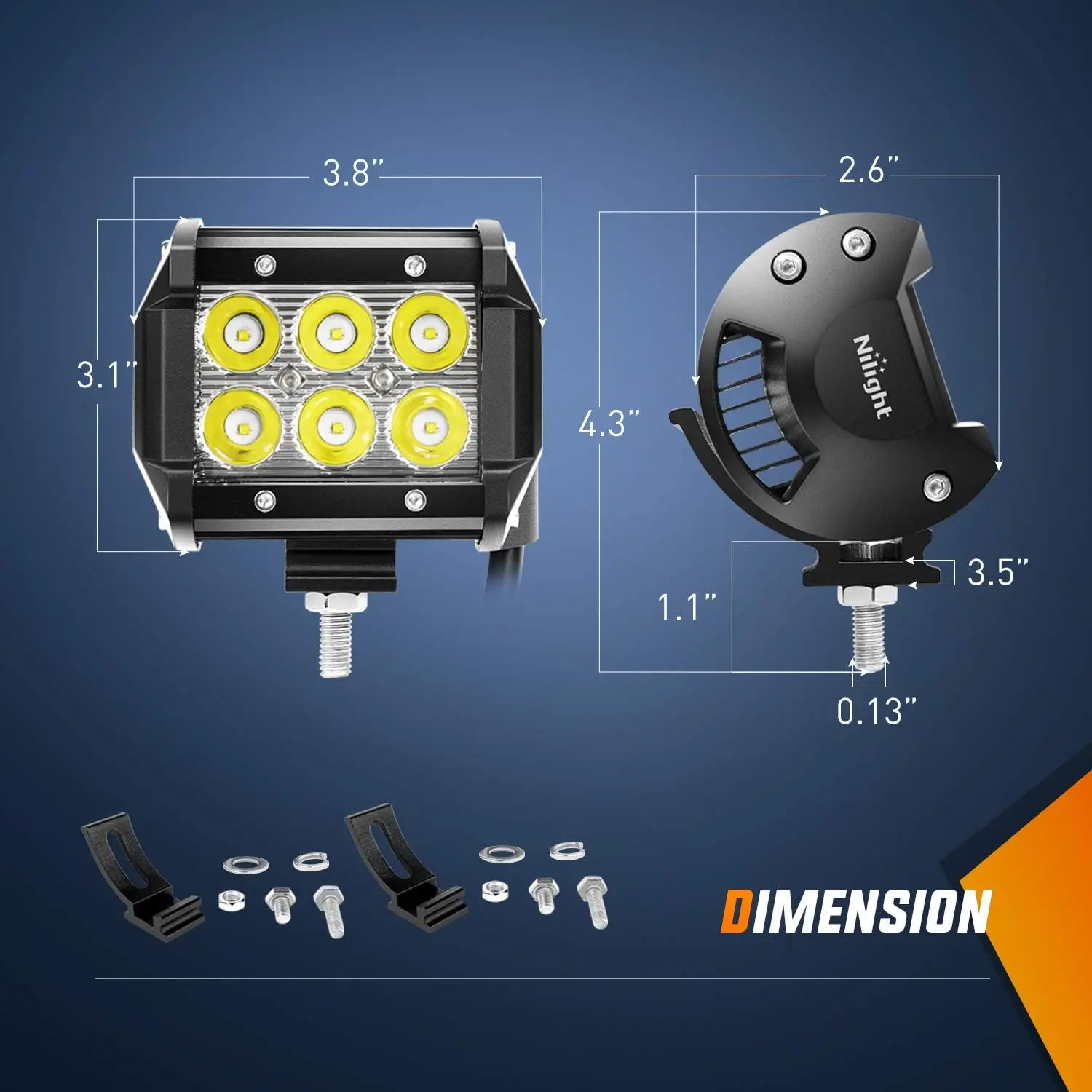 ·Package Includes: 2pcs 4 Inch 18W Spot LED Light, 2pcs Mount Bracket Clamp Holder and 1pcs wiring harness