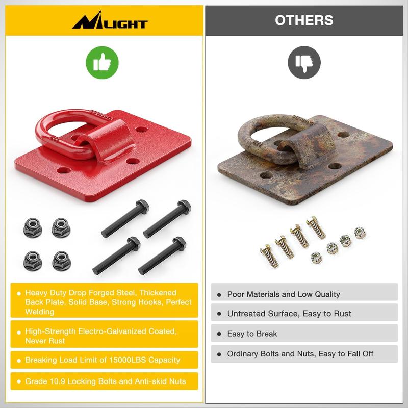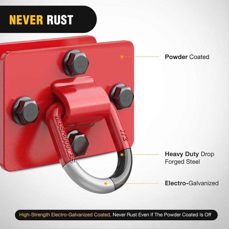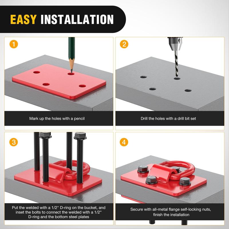 ·【Easy Installation】-1/2" D Rings Welded to the Backing Plate coming with complete hardware for Installation, you can fix the 1/2" D Rings on your machine with grade 10.9 locking bolts and lock anti-skid nuts easily