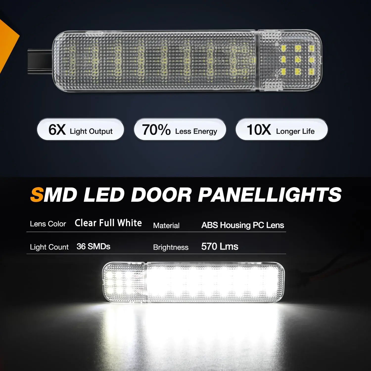Β·Build to last & Super Bright: Made of premium ABS housing and lens, won't faded at long-time exposure; 6 times brighter than original incandescent bulb housing light. Built-in high power SMD LED chips to maximize illumination on the interior side doors