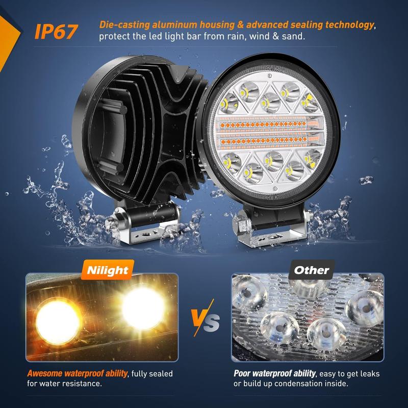 ·Perfect combo beam: Excellent visual effect, with 18 LED Amber light and 10 LED White light, and stable current. Upgrading reflector cup allows multi-angle refraction. And NILIGHT exclusive upgrade feature, always keep sync and same lighting mode, you won't be bothered by the out of sync light mode