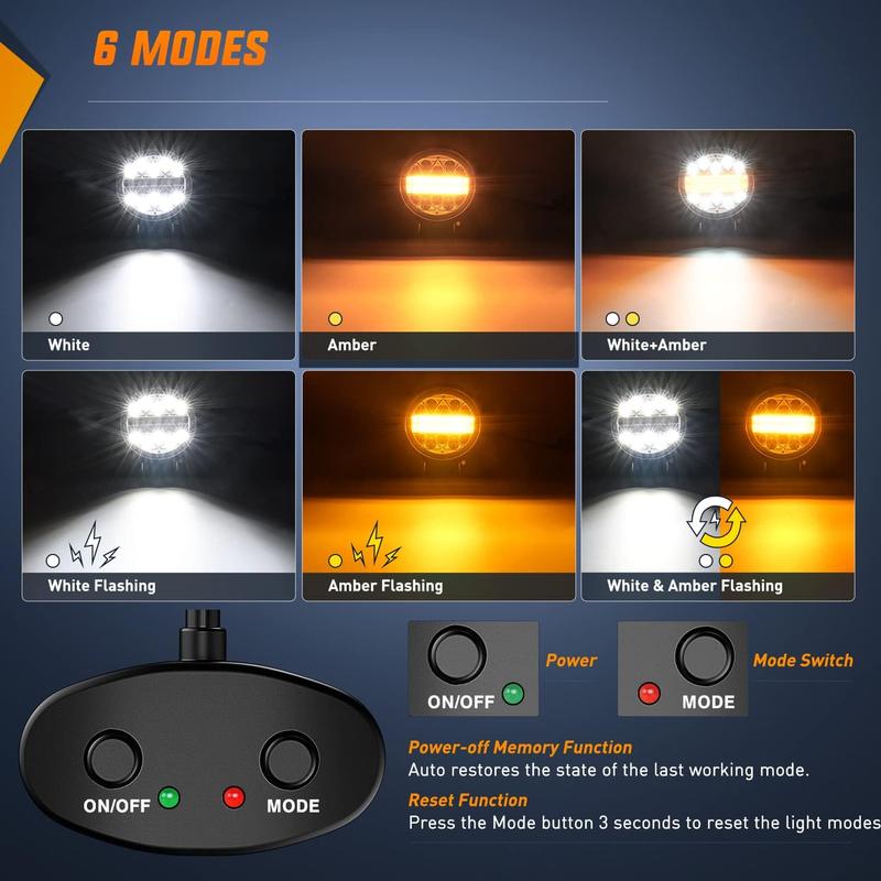 The Amber White strobe light is a new series of products of Nilight. It has six lighting modes, memory function, and reset function, which is used with a customized wiring harness kit.