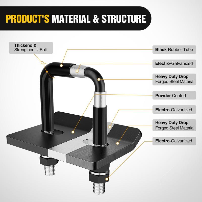 ·【PROTECTIVE RUBBER TUBE】Add rubber tube on a galvanize and powder coated U-bolt, which can reduce the risk of scratches, chipping and corrosion in any weather, extending the life of the kit