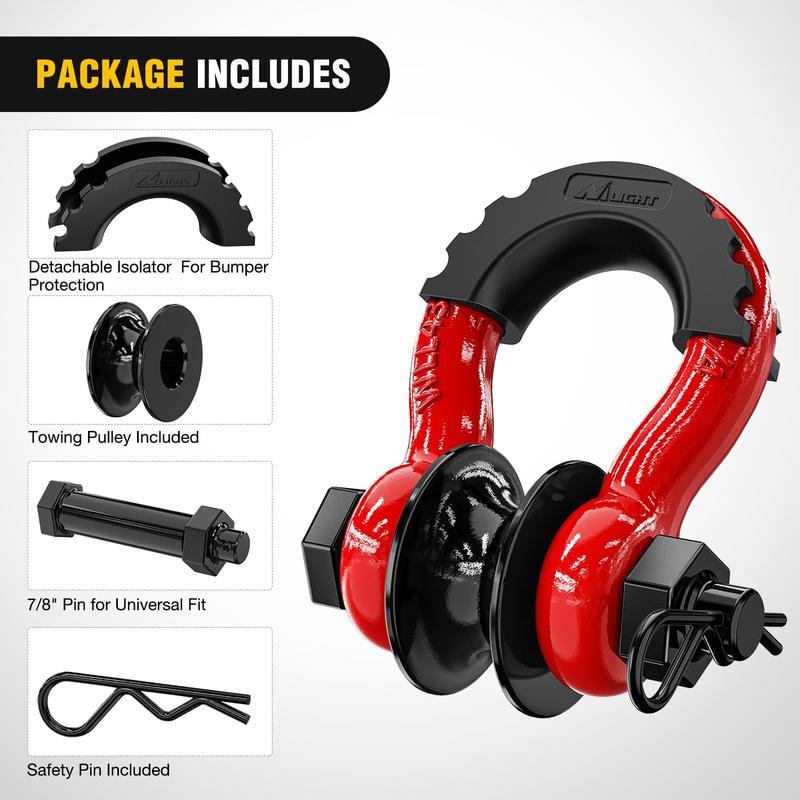 Nilight 3/4" D Ring Shackle with Towing Pulley
