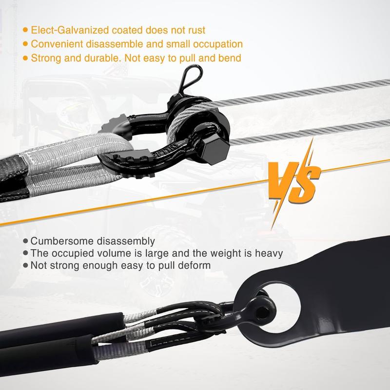 ·【 UNIVERSAL D RING SHACKLES 】 - 3/4" d-ring shackles 4.75 Ton (9,500 Lbs),with a Towing Pulley, an Industry Standard 7/8" Screw Pin , and an outer nut that avoids fall. The insurance pin provides additional protection.