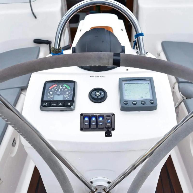 Rocker switch panel with pre-wired wiring harness for you to easily install in both 12V and 24V vehicles, yachts, ships, caravans, trucks, etc.