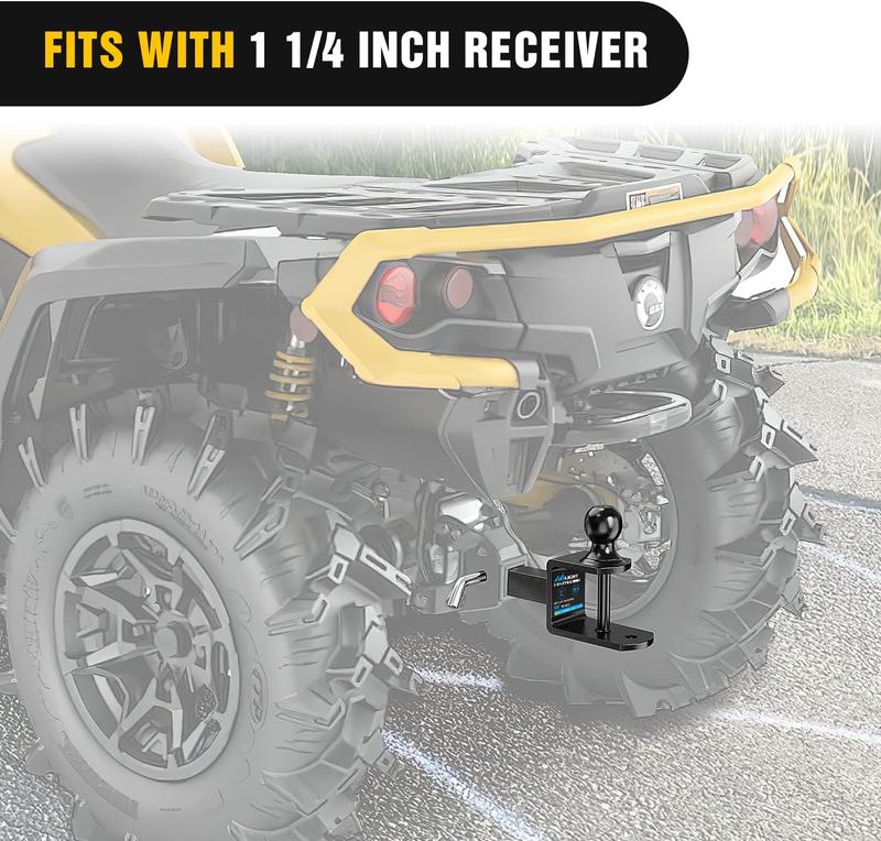 ·Easy to Install: Easily mounts to your ATV or UTV hitch receiver to provide a hitch ball, winch strap loop and 5/8-inch pin hole for yard work equipment, utility trailers and other towable accessories
