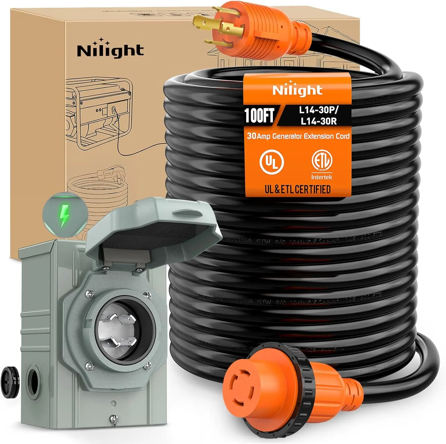 ·30 AMP Generator Power Inlet Box: NEMA L14-30P. Rated for 30AMP 125/250V. 30Amp generator inlet box with 4 prong L14-30P inlet plug, suitable for all 30 amp NEMA L14-30 generator cord. This 30A power inlet box is a good partner for the generator to accommodate the power cord. It is designed to be installed in outdoor areas where generators are used outdoors, and also be ideal for backup power during power outages/bad weather, etc.