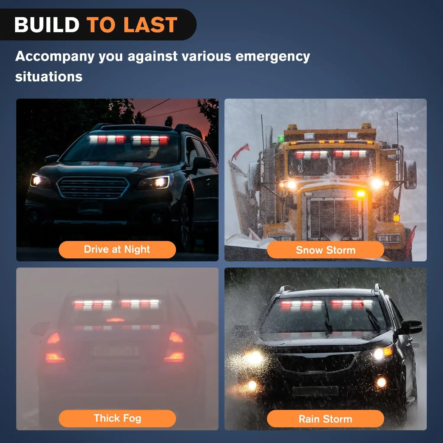 ·Flashing Patterns: Choose from 26 different flicker modes, just plug in the 12V cigarette lighter switch, you can control the desired strobe mode through the display handle, including steady on, alternating blinking, fast blinking, etc. It also has a memory function, and can still use the mode before closing after re-opening.