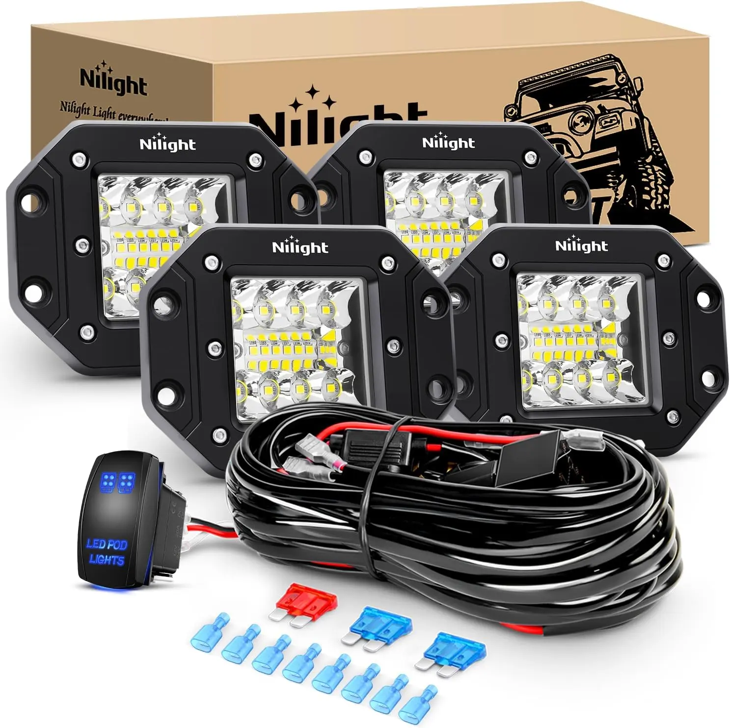 ·Excellent Brightness: With added led quantities, triple row design, and combination of flood &spot beam, the flush mount light pods emits a better and perfect 7800LM light to light up the entire road ahead of you, excellent visibility, no more afraid of darkness