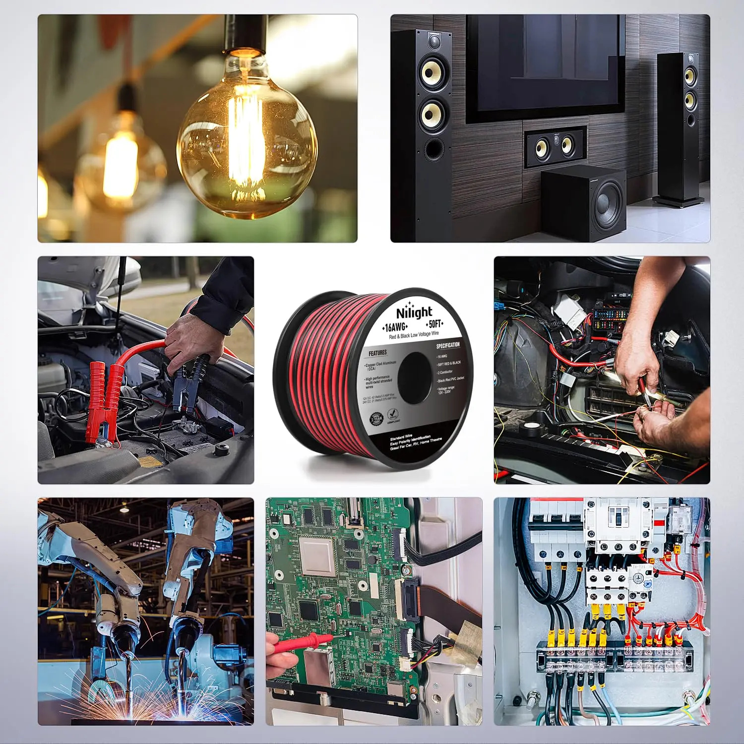 ·Package Includes: 16 gauge 50 Feet (50FT Red & 50FT Black) wire wound on a hard plastic spool, actual length is 15.24m.