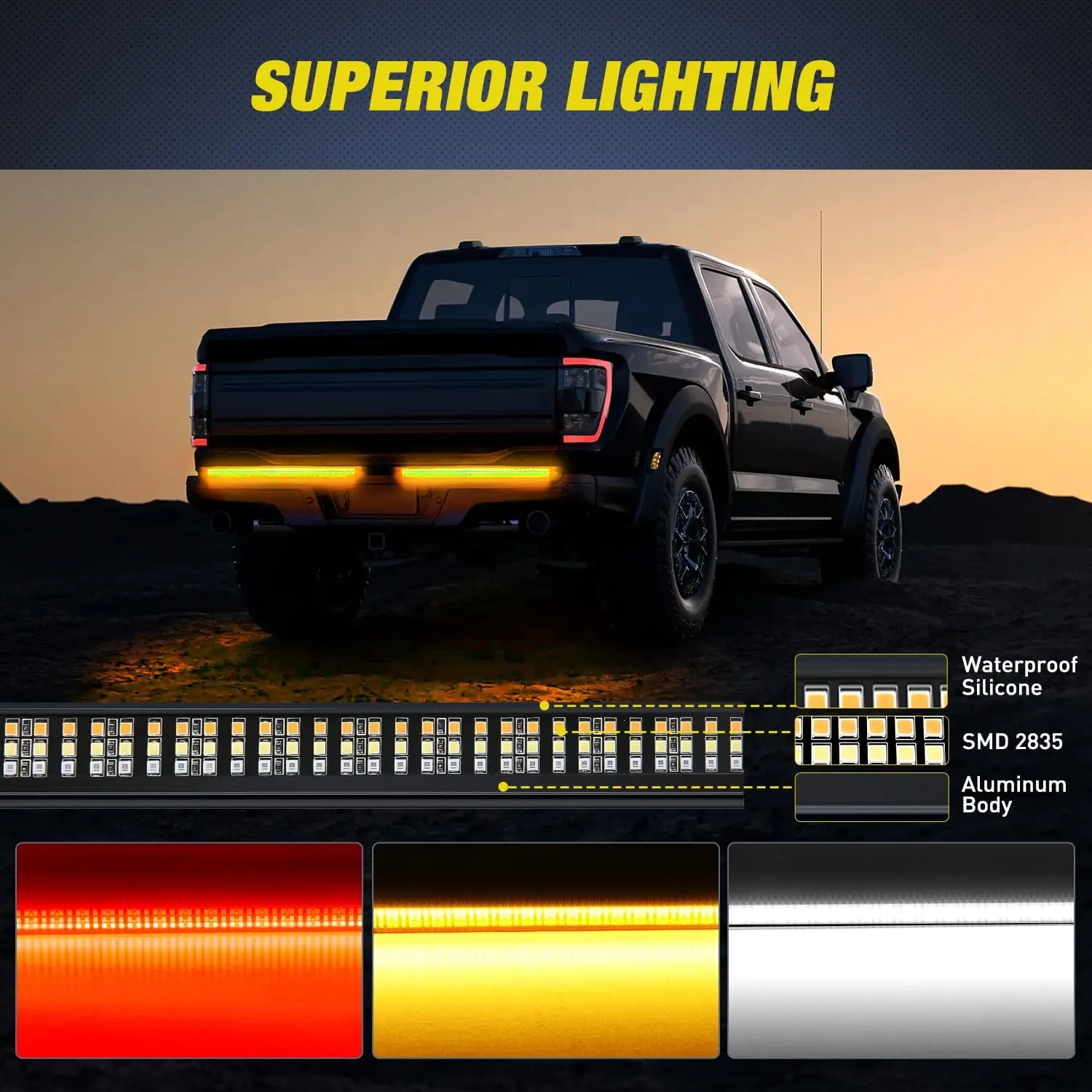 Adopted Triple-row total 576pcs SMD 2835 LED chips, 300% brighter output, provide more stylish light to light up the back area behind the vehicle.
