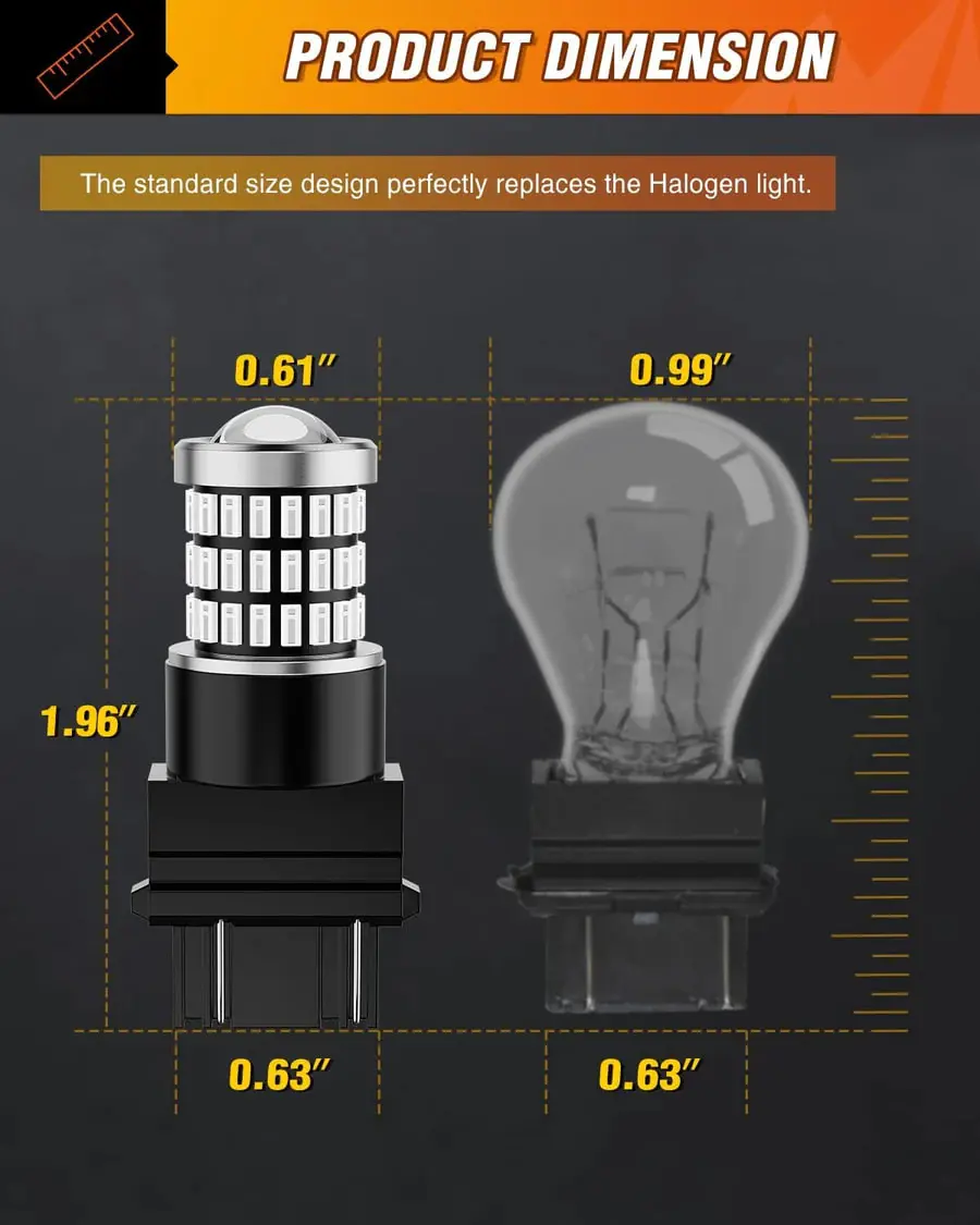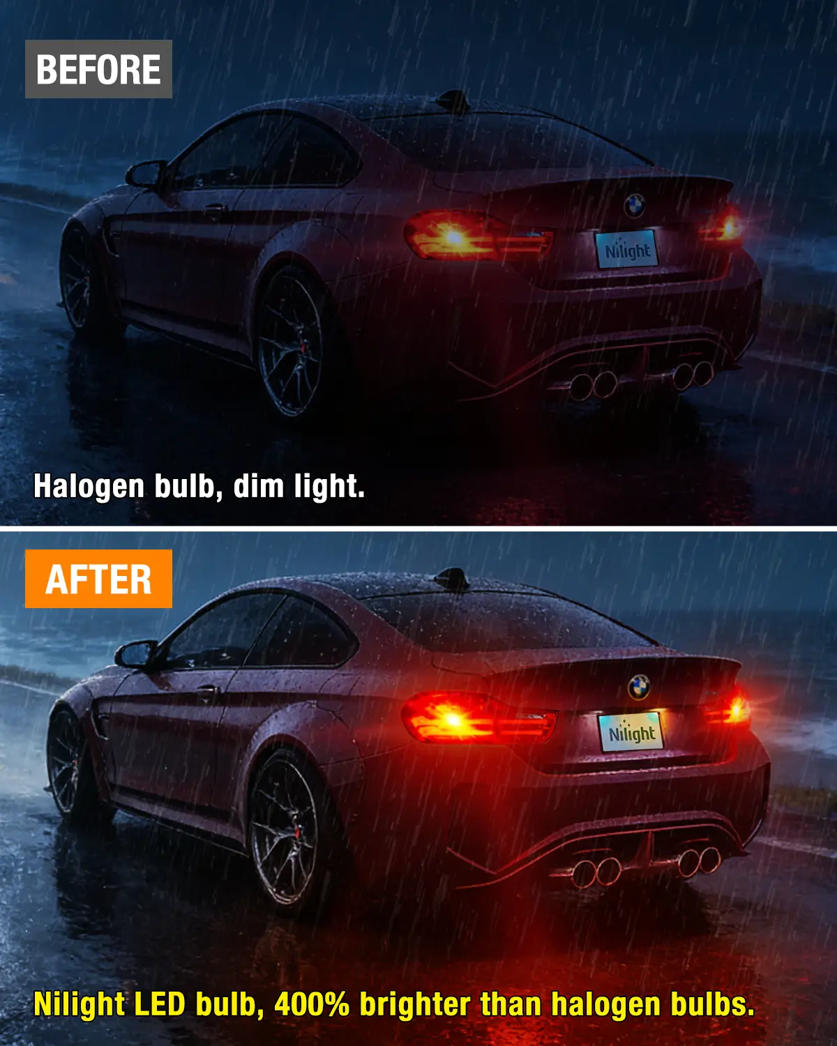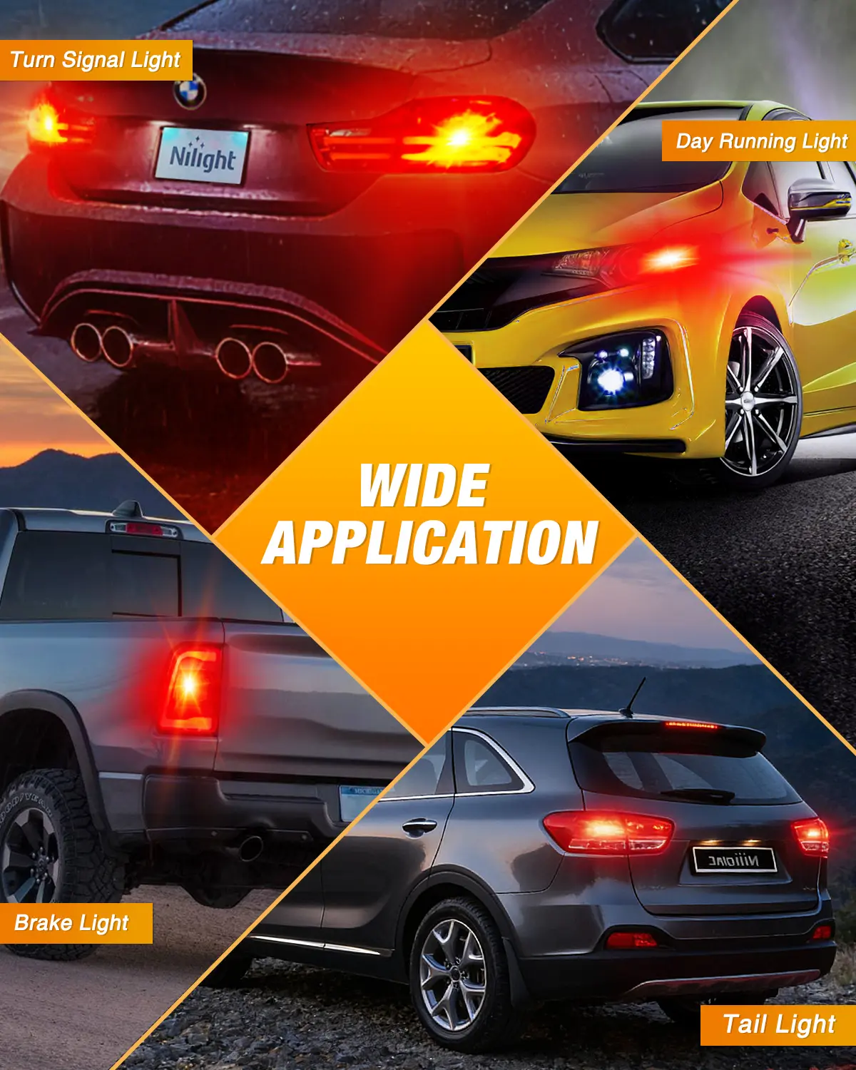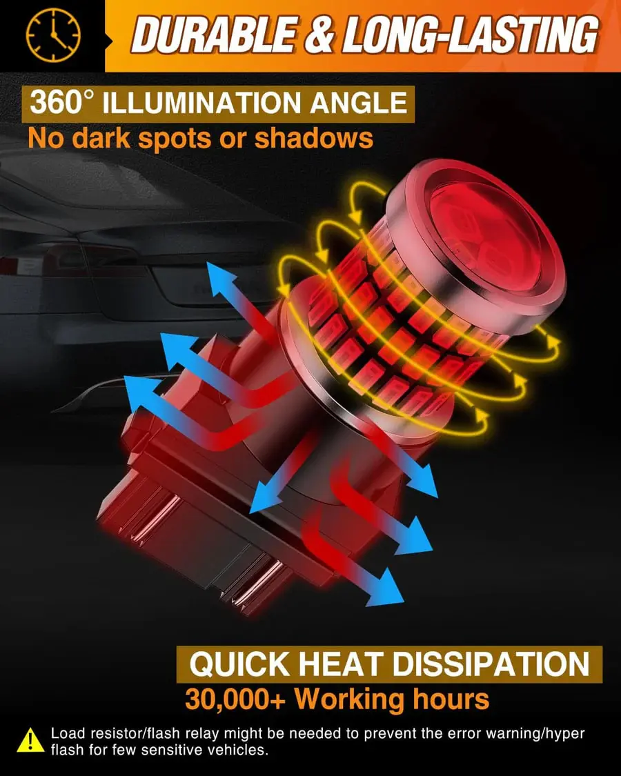 ·Brighter & More Durable: Each light bulb is equipped with 54pcs 3014 and 3pcs 3030 SMD LED, output bright red light. With projector lens, 360° omnidirectional illumination, without dark spots. 400% brighter than Halogen bulb, make the driving more safer