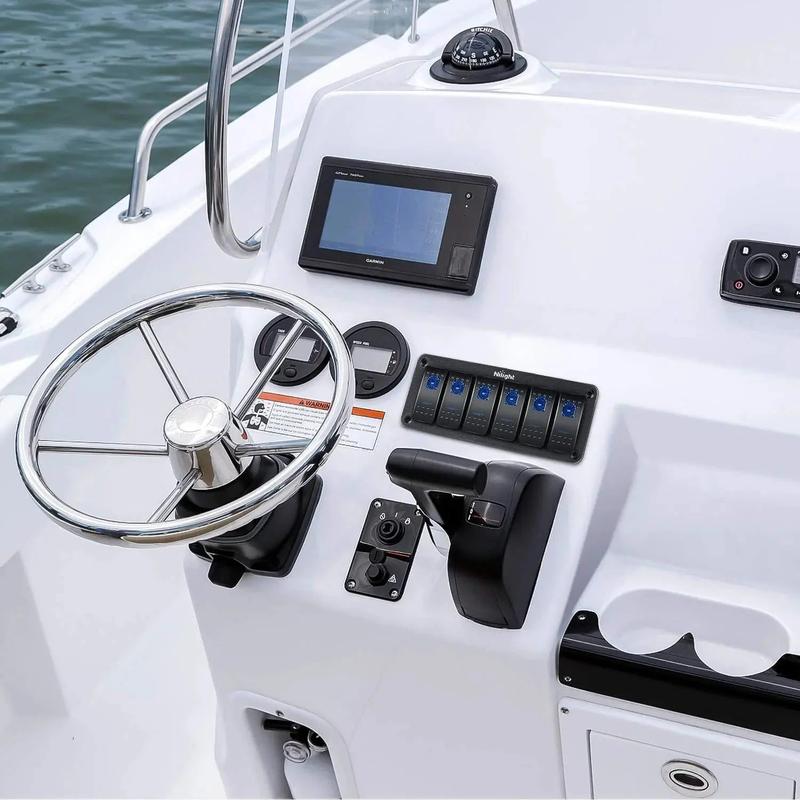 Rocker switch panel with pre-wired wiring harness for you to easily install in both 12V and 24V vehicles, yachts, ships, caravans, trucks, etc.