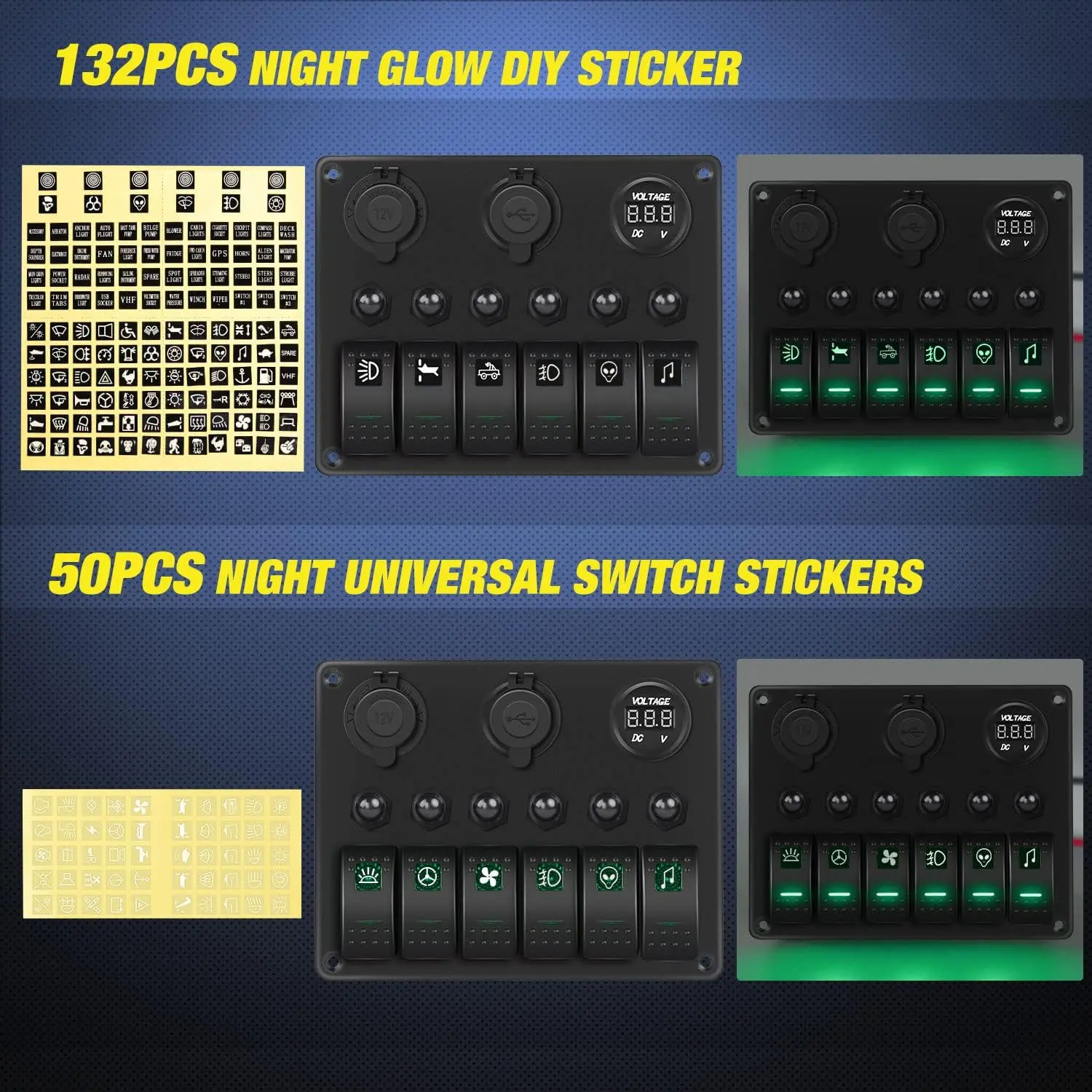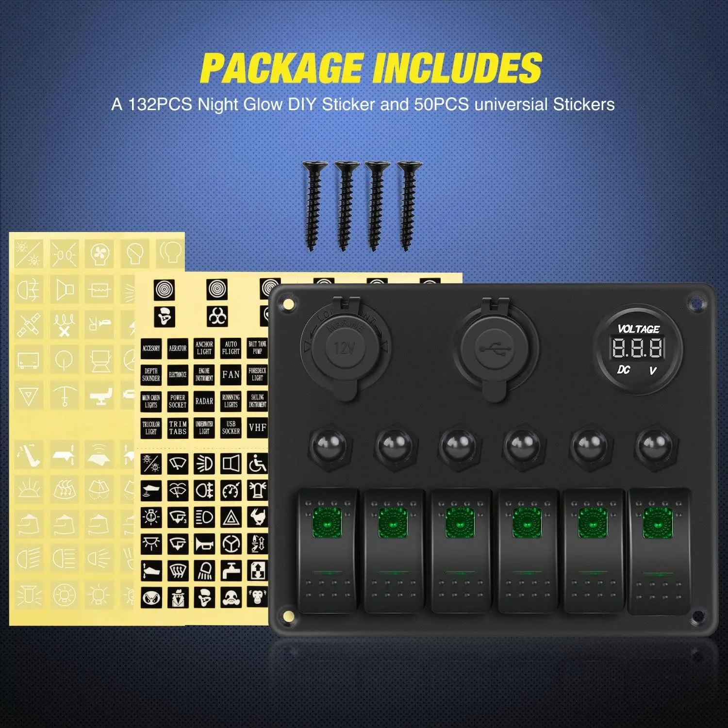 ·Package includes: 6 gang toggle rocker switch panel, 4 screws and 2 pieces of sticker.Fit type: Universal Fit