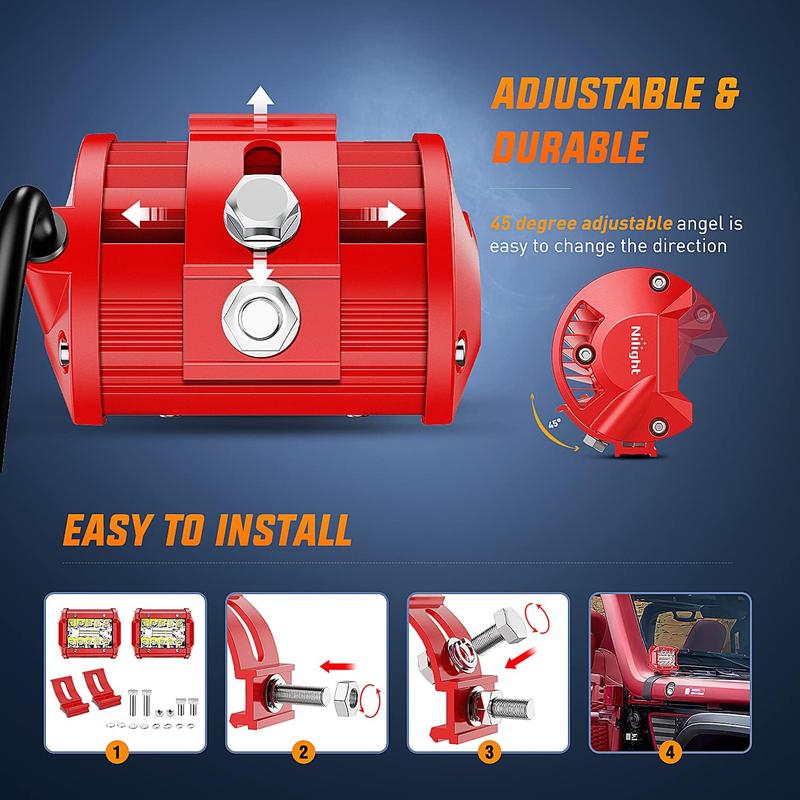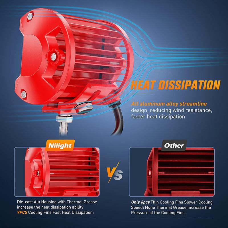 ·【High Performance】IP67 Waterproof rating, die-cast aluminum alloy shell, waterproof, dustproof, rustproof and shockproof perfect performance. Quick cooling alloy heat sinks can effectively extend the lifespan of the driving light to over 50,000 lifespan!