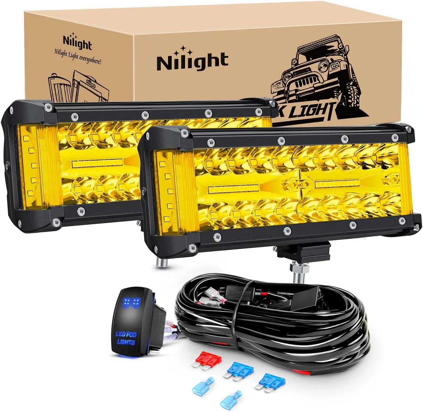 ·【Super Bright Yellow Light】 Combination of 50 pcs superior-quality chips emit 3500k bright yellow light, to dispel darkness and can be more penetrating in rainy, snowy and foggy weather, give safe view in most of bad weathers, make driving safer