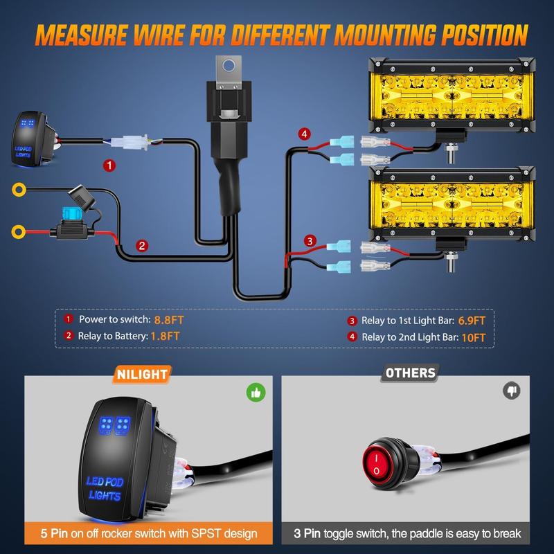 ·【Wide Application】With the working voltage of 9-30V DC (wire harness kit is for 12V vehicles), can be widely used on most of vehicles, perfect for different types of Off-road vehicles, Truck, heavy duty, SUV, ATV, UTV, tractor, boat, etc