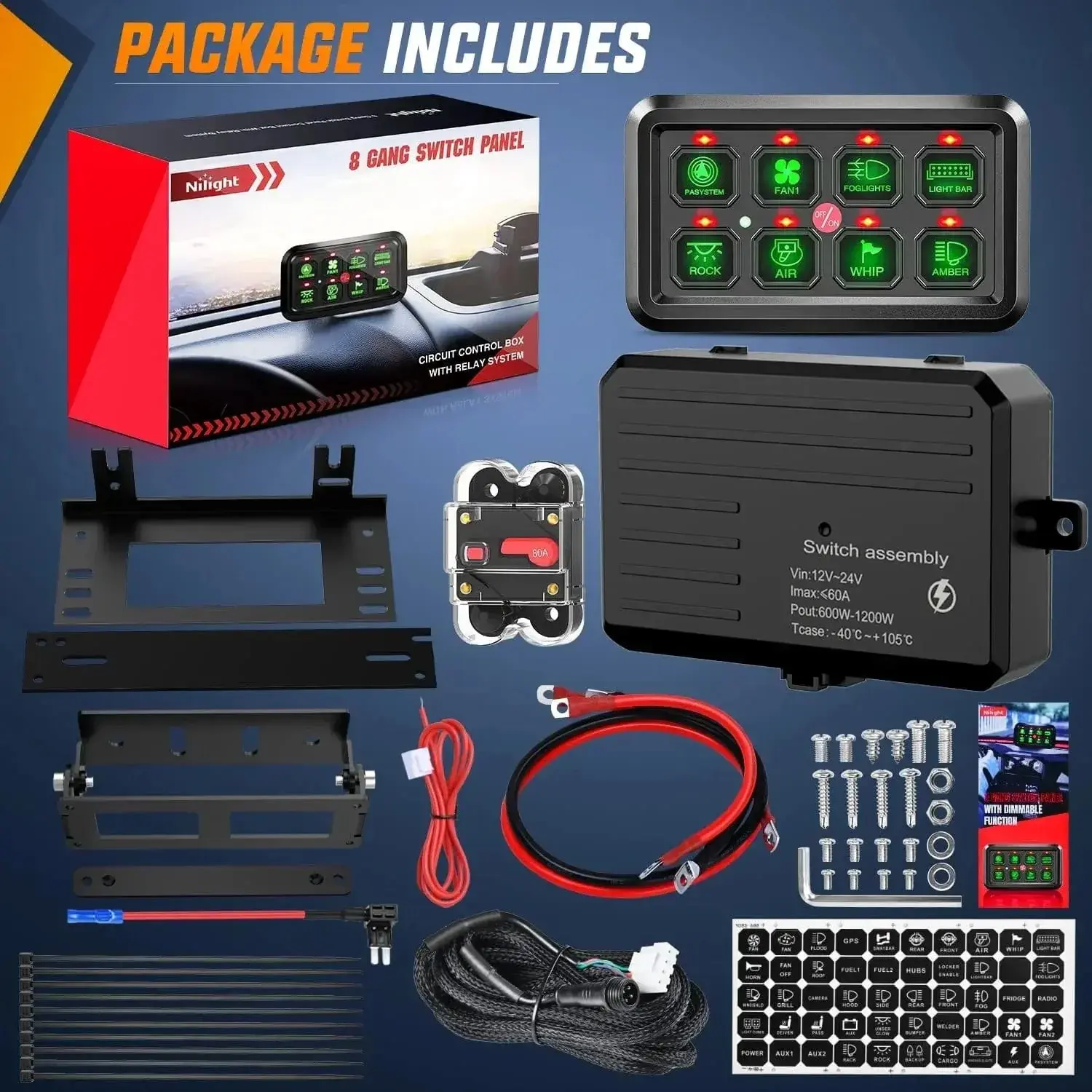 ·Panel Backlit Automatic Dimmable: Not as dazzling as other switch panels. The Backlit of Nilight switch panel is adjusted automatically according to the surrounding environment. Maintain the most comfortable visual brightness while driving.
