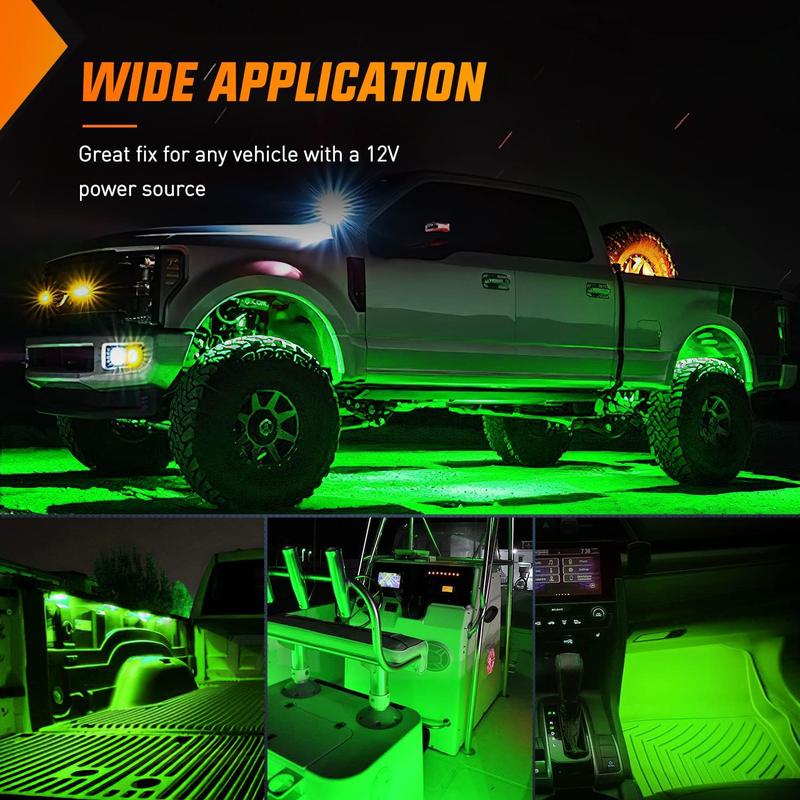 ·Application: It can be used in a variety of interior and exterior applications including Under Car, Underglow Footwells, Pickup Truck Beds, Rock Lights, Running boards, tonneau cover, etc. Compatible with most pickup such as ford, dodge ram, Chevrolet, toyota, trucks, RVs, SUVs, UTV, ATV, motorcycle, jeeps, boats, etc.