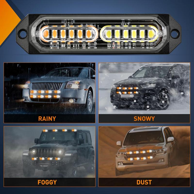 Nilight 8PCS Led Strobe lights 12LED Amber White  Light 12V 24V Surface Mount Flashing Warning Hazard Beacon Lights Ultra Slim Sync Feature Mini Grille for Cars Trucks Off Road Vehicles SUV Side Lamp Bulbs  dealsforyoudays