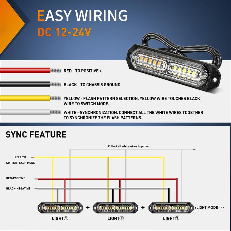 This strobe lights can even be installed on ATV, UTV, RV, Campers, SUV as long as your car is 12V or 24V.
