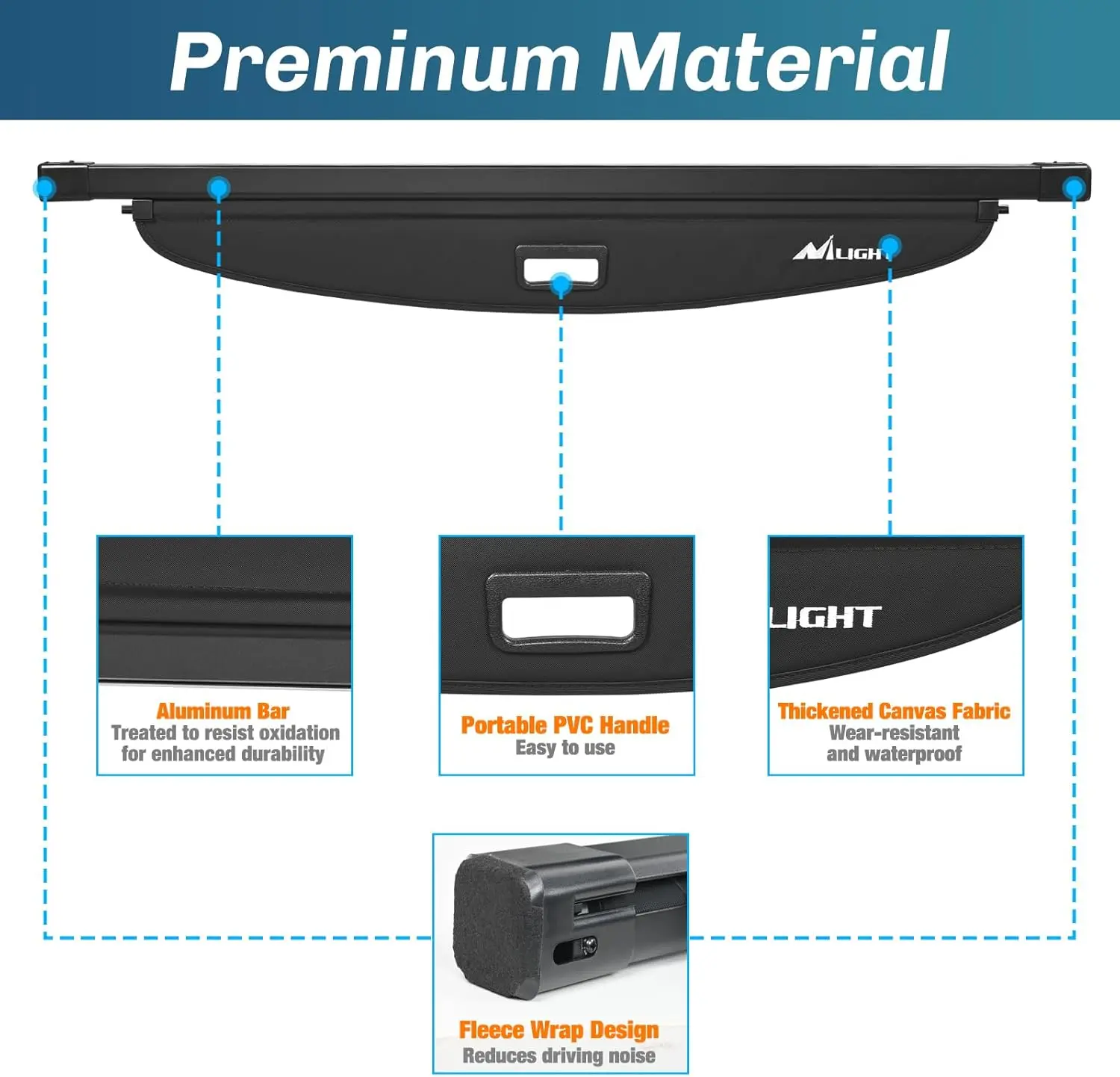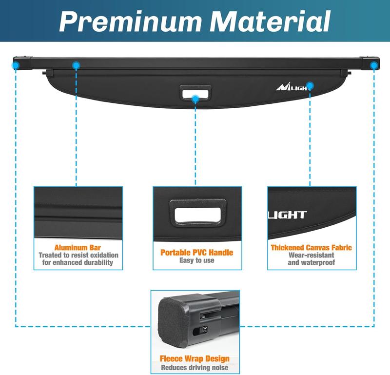 ·Durable Quality: Nilight trunk cargo cover is made from high strength canvas for durability. It is waterproof, dirt-resistant and scratch-resistant, providing long-lasting protection for your cargo area