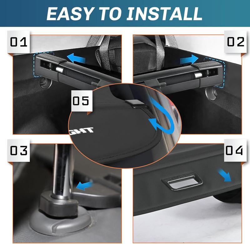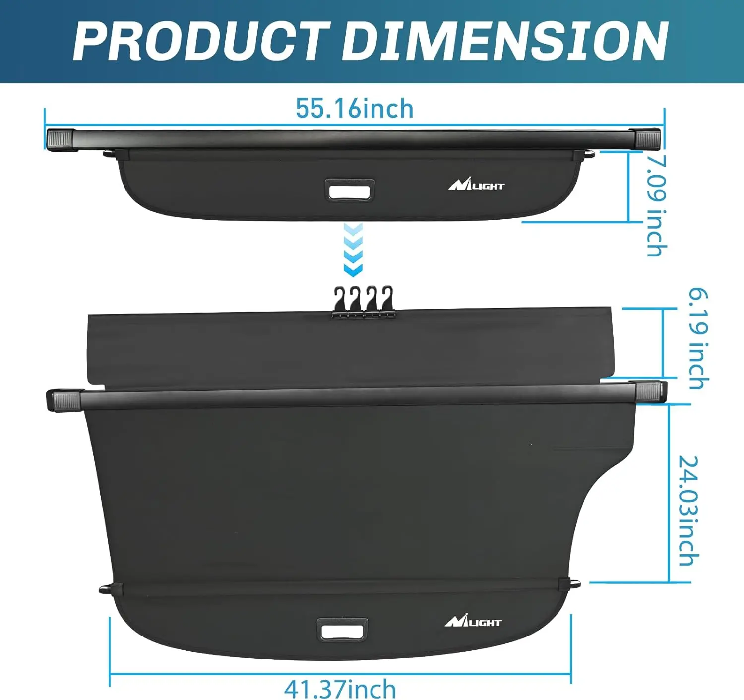 ·Easy Installation: The cargo cover is easy to install and requires no drilling or tools. Simply snap it into the original slots and retaining hooks in minutes. It retracts easily when not in use and includes an additional storage net to prevent your luggage from sliding during rough road driving