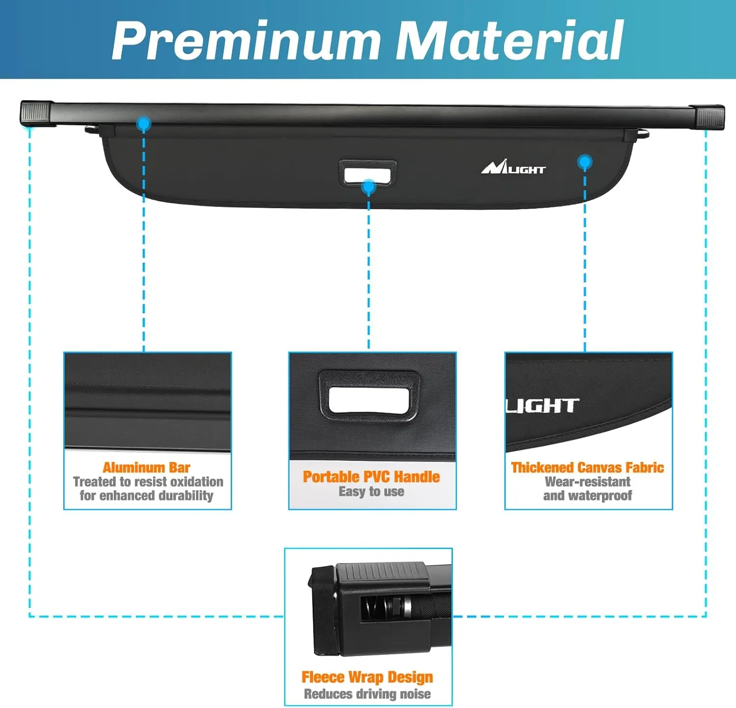 ·Durable Quality: Nilight trunk cargo cover is made from high strength canvas for durability. It is waterproof, dirt-resistant and scratch-resistant, providing long-lasting protection for your cargo area