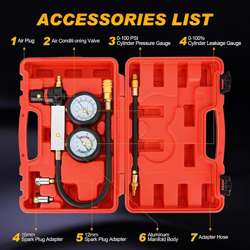 ·Convenient to Read: The cylinder leak down tester kit features a dual-gauge design for concurrent pressure and leak rate testing within the cylinder. With a range of 0-100 psi / 0-7 bar and 0-100% (±0.5% accuracy), 3-inch gauge is easy-to-read, enhancing efficiency and saving test time